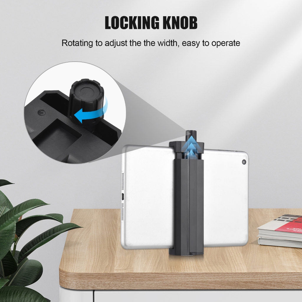 Smartphone Tablet Tripod Mount Phone Holder Clamp 13cm-24.5cm/5.11in-9.64in Adjuatable Width with Cold Shoe Mount 1/4in Threaded Holes Compatible with Tablet Smartphone iPad iPhon