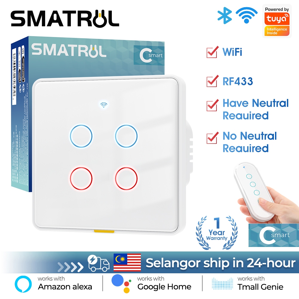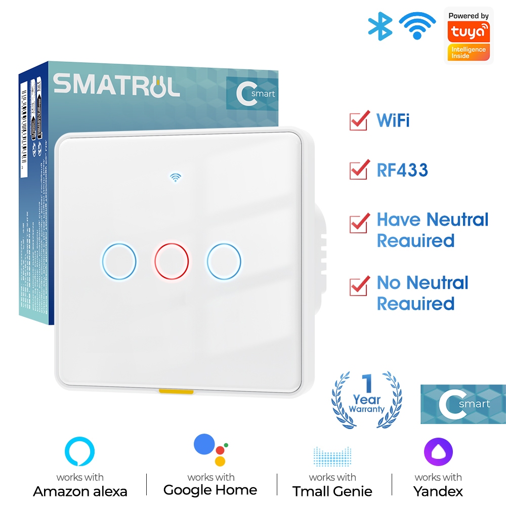 Smatrul Tuya Smart Switch Wifi Multi-control Smart Switch No Neutral Wire RF433 Smart Wall Light Switch Timing Voice Smart Home 110-240V