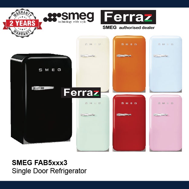 Smeg FAB5 Single Door Cooler 38L (FAB5xxx3) 50s Style Retro Vintage Mini Bar Fridge Refrigerator