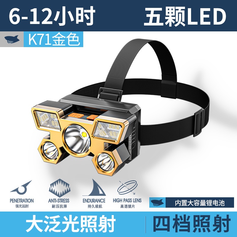 Smiling Shark K71 Led Headlight Rechargeable Headlamp Multi-function Head Lamp XPG 4 Modes Portable Waterproof Head Light Outdoor Working Camping Fishing Hunting Lighting