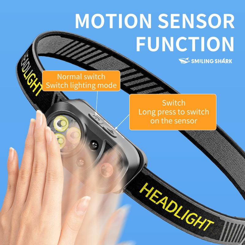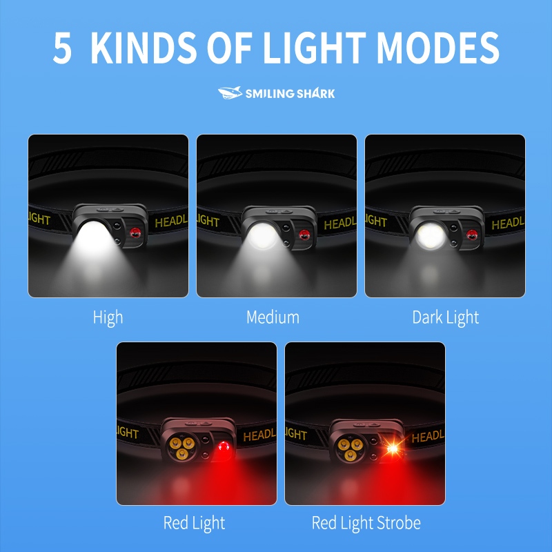 SMILING SHARK Rechargeable Head Lamp Led White Red Light Super Bright Headlight 5Mode Waterproof Outdoor Lightweight TD0202