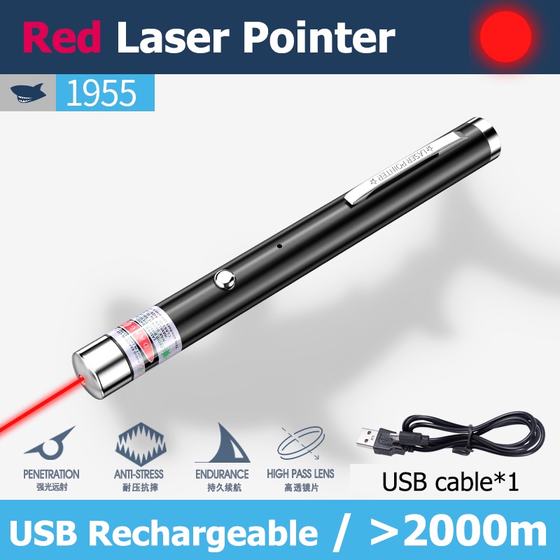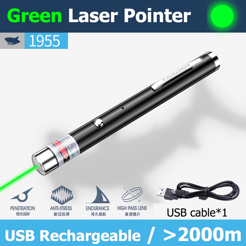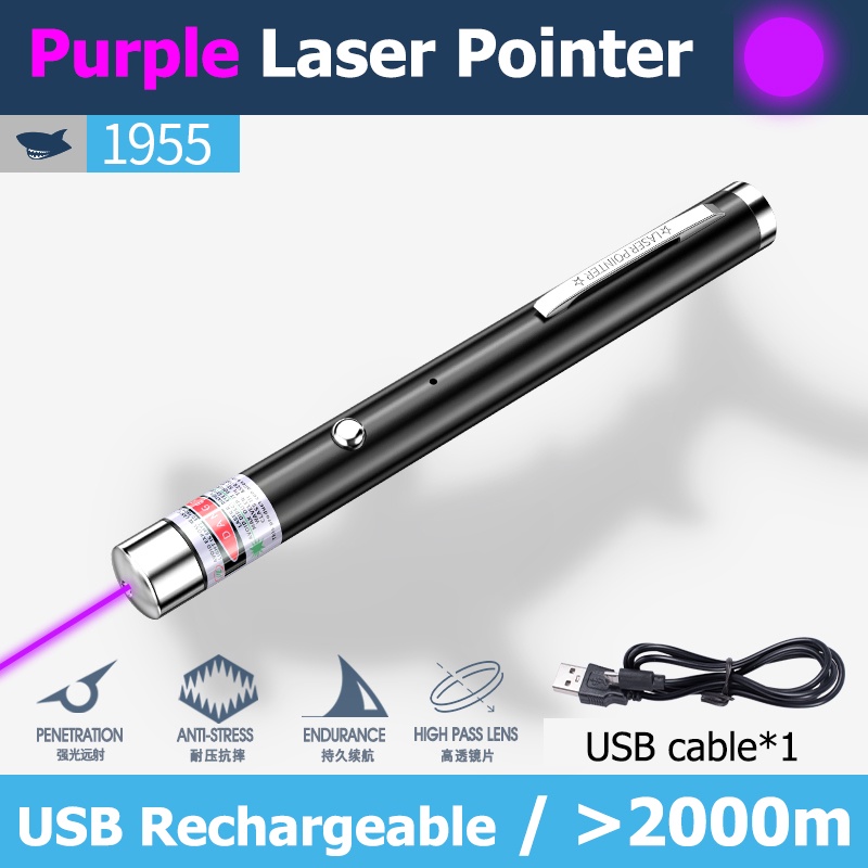 SmilingShark 1955 Green Laser Pointer Red Laser light Purple Laser Pen USB Rechargeable 1000meters for Cat play Teach Powerpointer