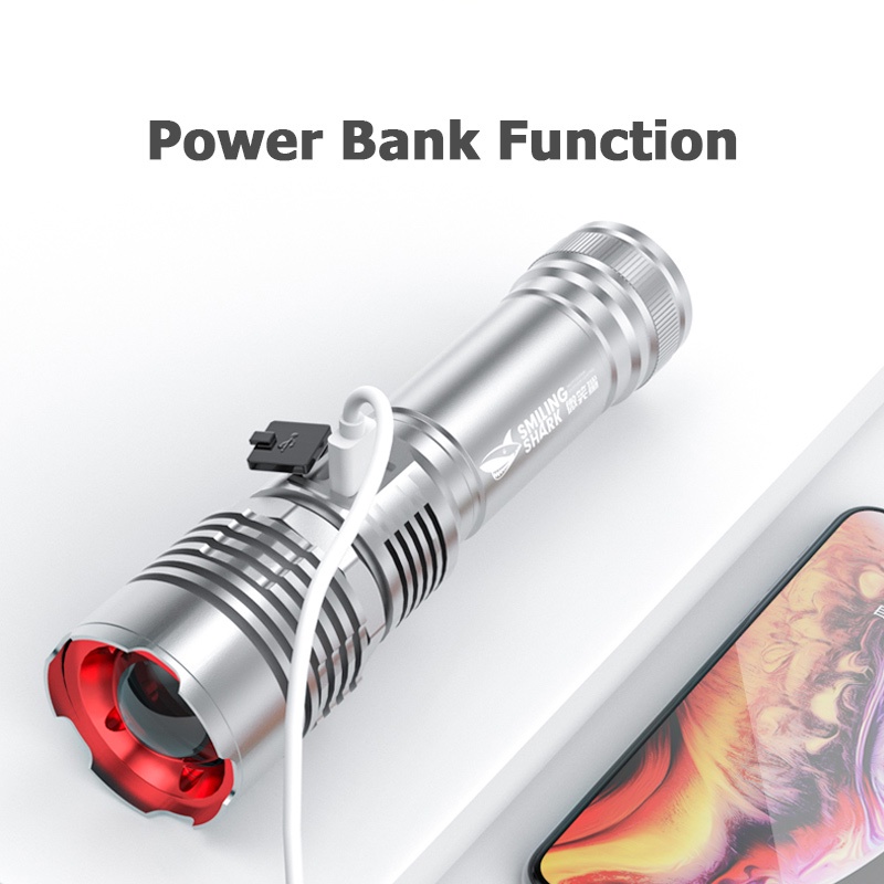 SmilingShark SD5217 Flashlight 4500lumens Powerful Torchlight Zoomable USB Rechargeable 4modes Waterproof for Outdoor Camping