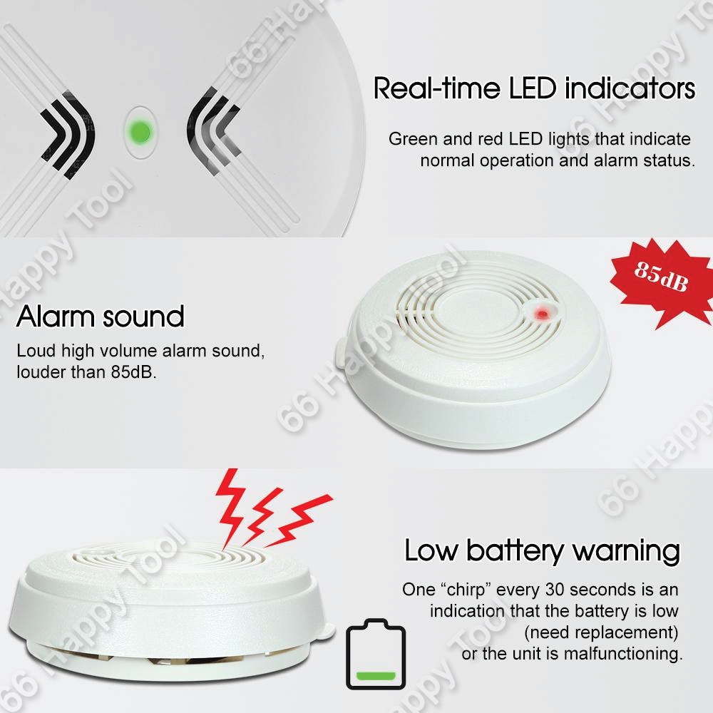 Smoke Alarm 9V Wireless Safety Wall-Mounted Sensor Smoke Detector Penggera Asap Kebakaran Fireproof Prevention