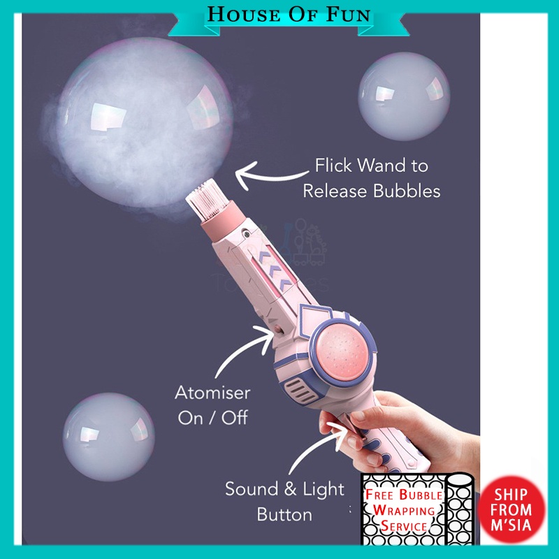 Smoke Bubble Wand Automatic Bubble Gun with Sound & Light Bubble Machine Camera Free Bubble Solution Liquid Mainan Kanak