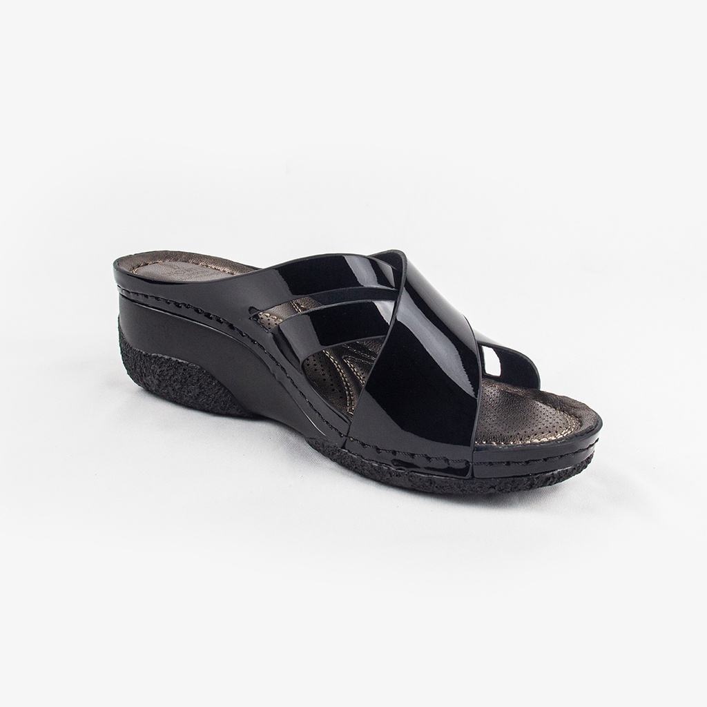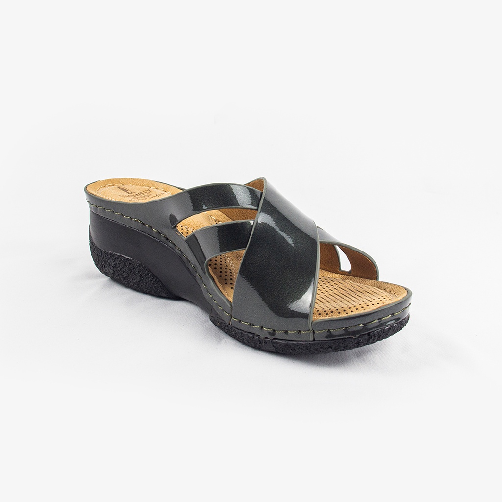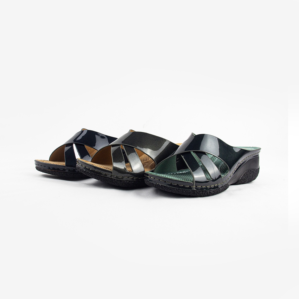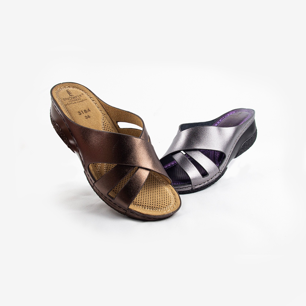 Snowfly Real Leather Make Comfort and Non-slip Soles Crossstrap Slip-on Wadges Scandal L3184
