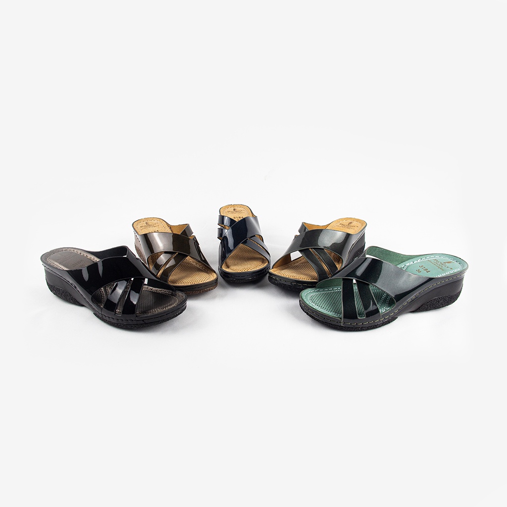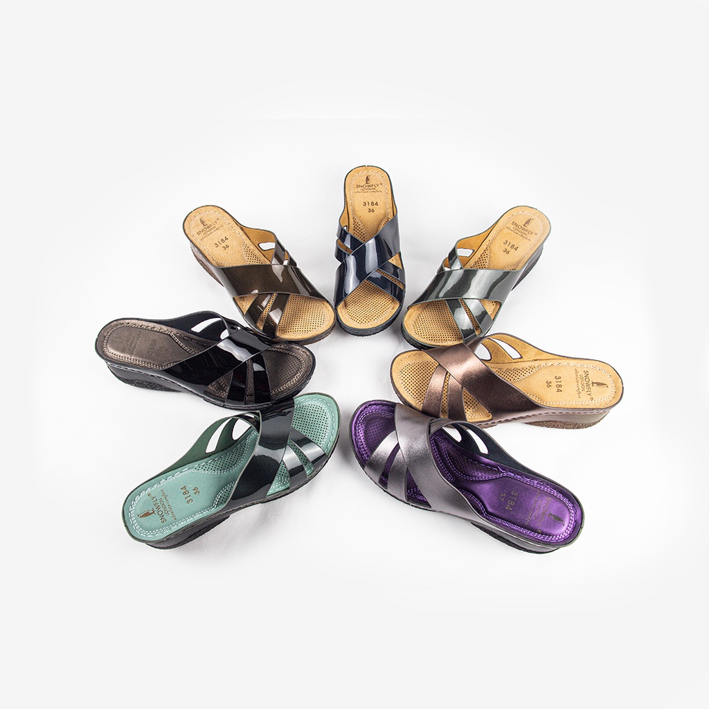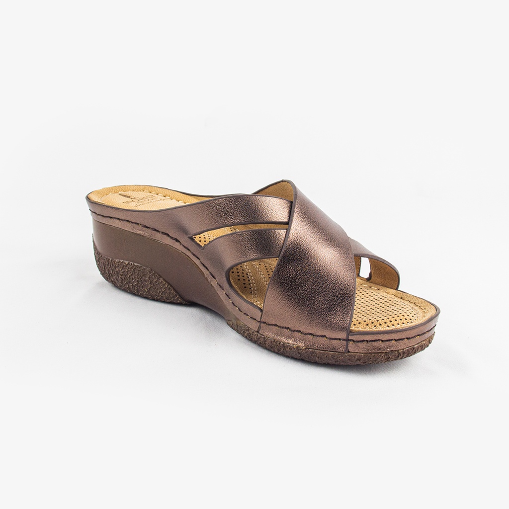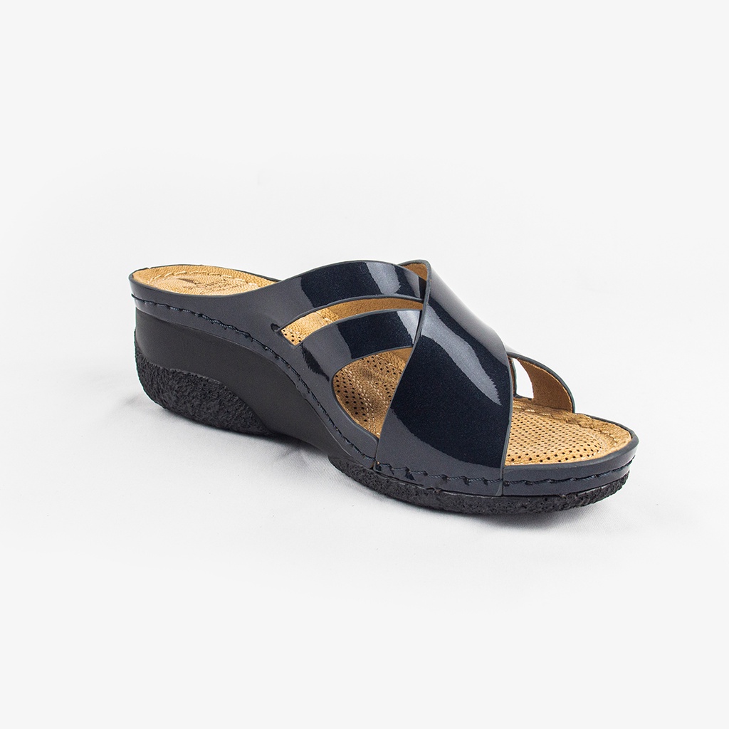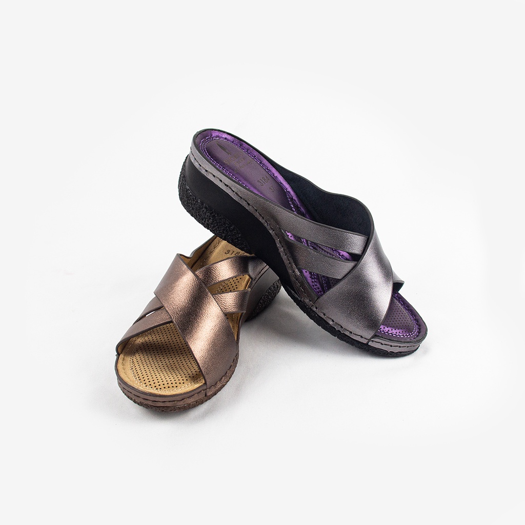 Snowfly Real Leather Make Comfort and Non-slip Soles Crossstrap Slip-on Wadges Scandal L3184
