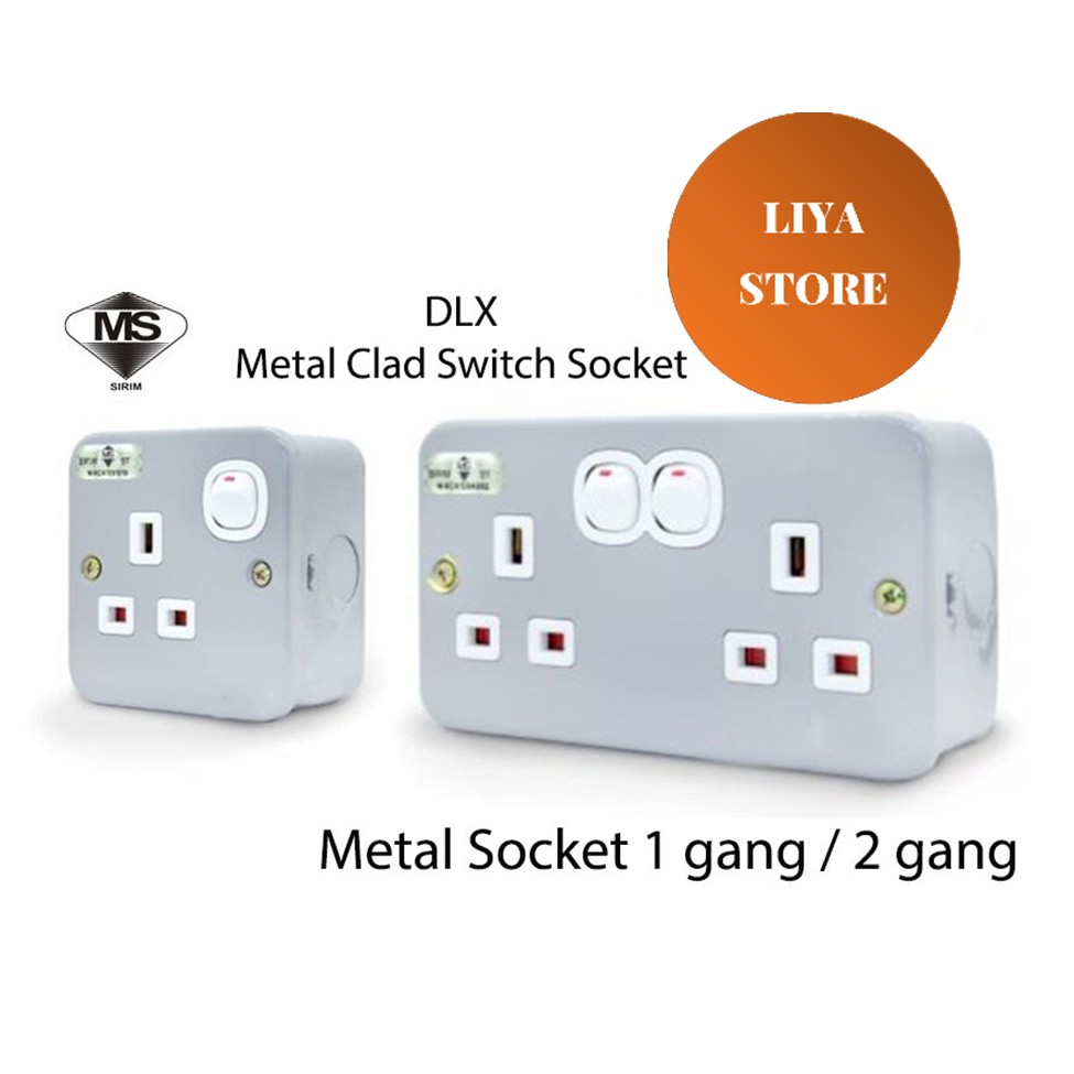 Socket Single/Double Metal Clad Switch Socket 1 gang / 2 gang Sirim Approved DLX 13AMP Metal Clad Switched Socket