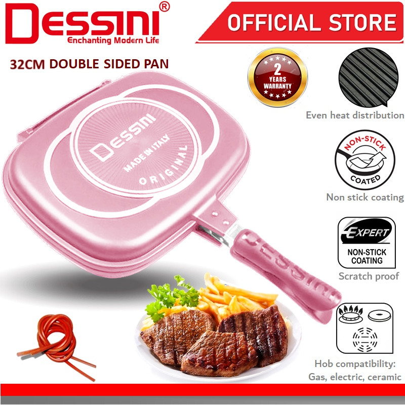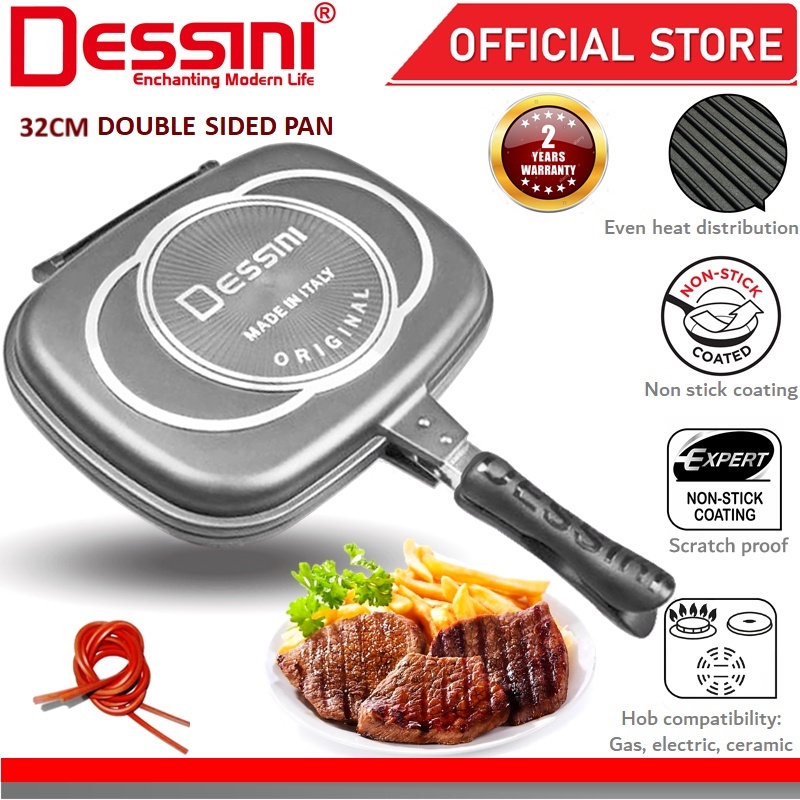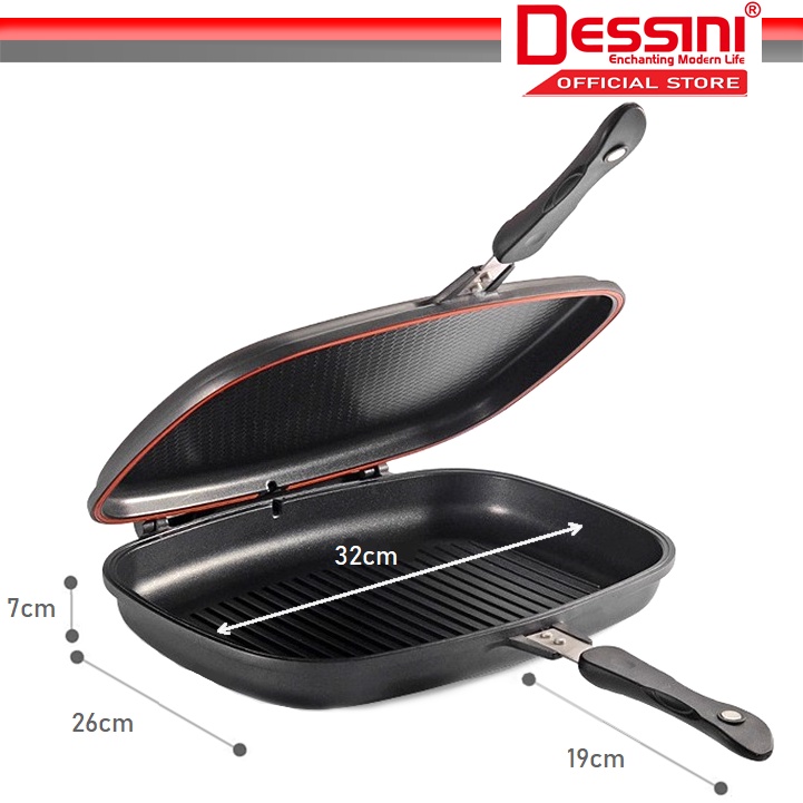 DESSINI ITALY Granite Aluminium Non Stick Double Sided Pressure Grill Fry Pan Cookware Tool (32cm)