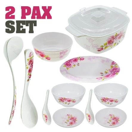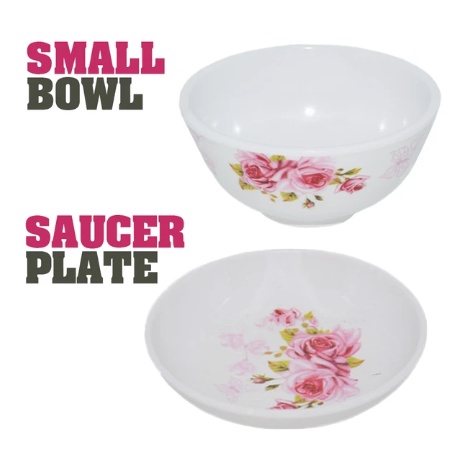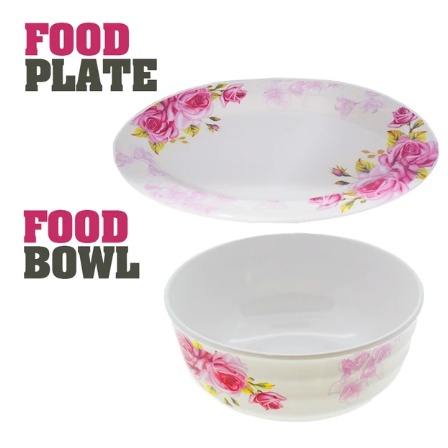 Rose Pattern Melamine Kitchen Dining Tableware Set 6 [ 11 Pcs / 22 Pcs ]