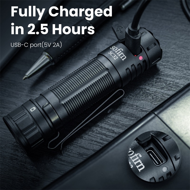 Sofirn SC32 LED Flashlight Super Bright 2000 Lumen SST40 LED Light USBC Rechargeable Water Resistant Powered By 18650 Battery