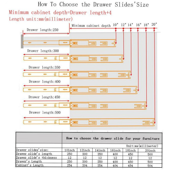 Soft Close Heavy Duty Full extension 3 way slide, Three way slide, Three way runner for Cabinet, 12" 14" 16" 18" 20"