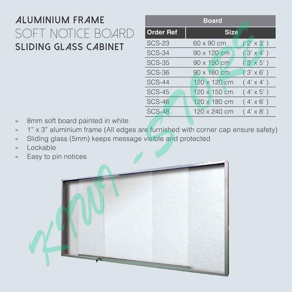 Soft Notice Board With Sliding Glass Cabinet /Notice Board