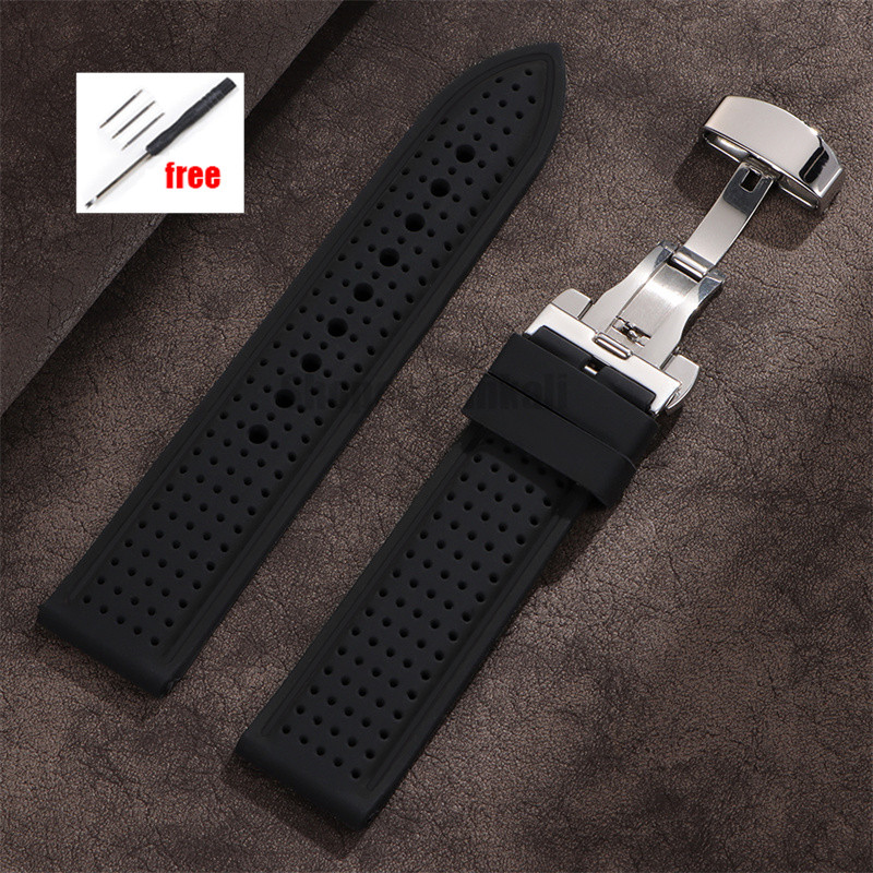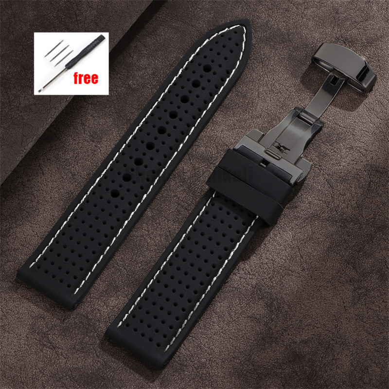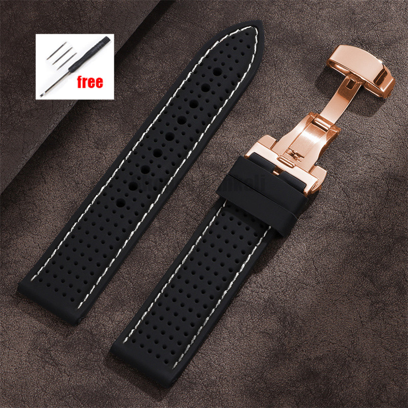 Soft Silicone Watch Band 20mm 22mm 24mm Universal Replacement Bracelet Stitching Rubber Wristband Butterfly Buckle Watch Band Accessories