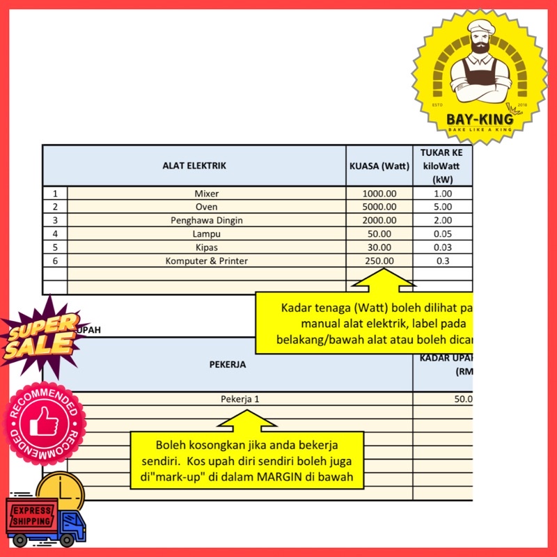 Software Kira Untung Kasar / Kira Kos / Kira Margin (semua jenis Perniagaan Makanan) + Percuma Pemadam Lukisan Dinosaur
