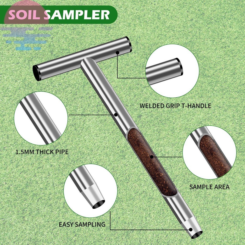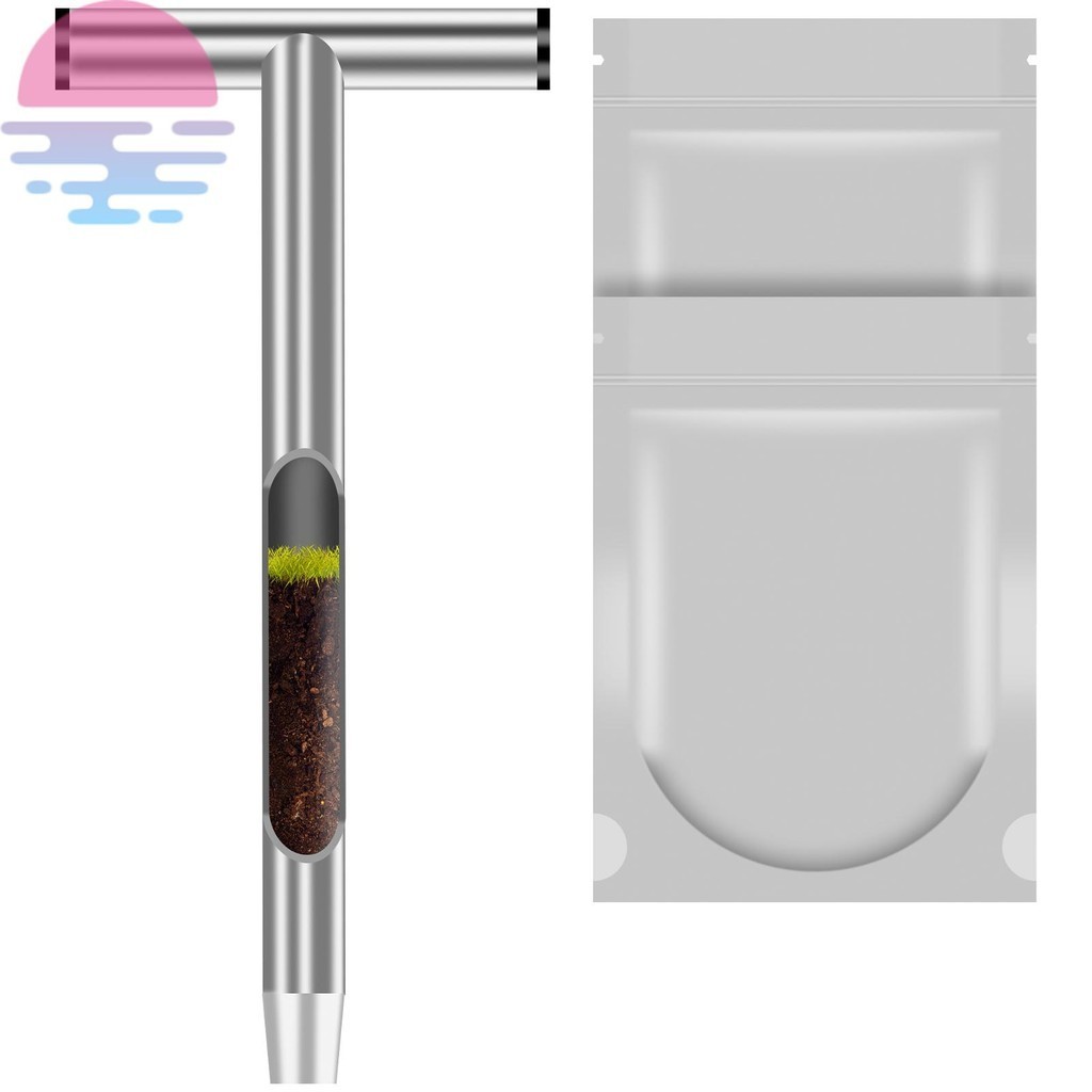 Soil Probe 304 Stainless Steel Soil Sampler with 2 Reusable Sample Bags T-Style Handle Soil Sample Probe SHOPCYC5915