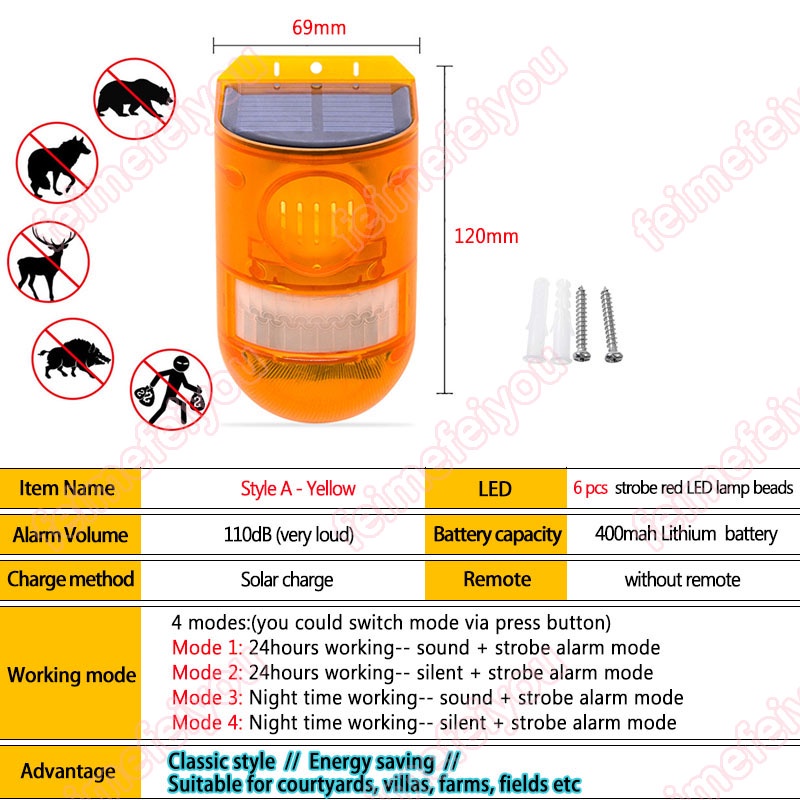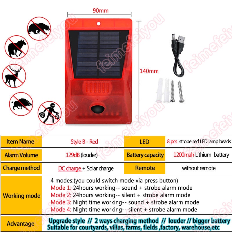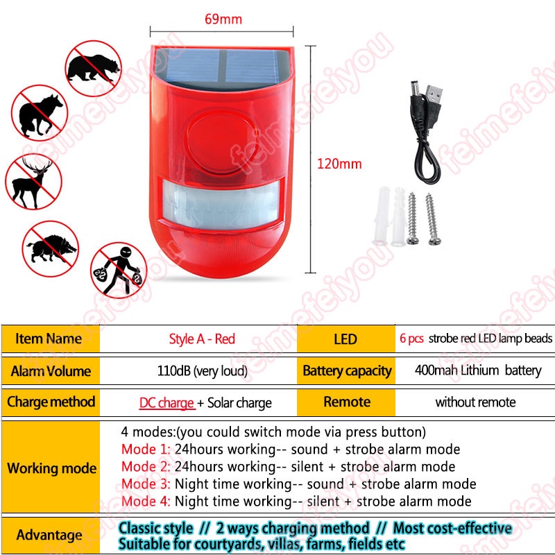 Solar Alarm Lamp Remote Control Security Alarm Outdoor Waterproof Motion Sensor Alarm Siren PIR Motion Sensor Detector F