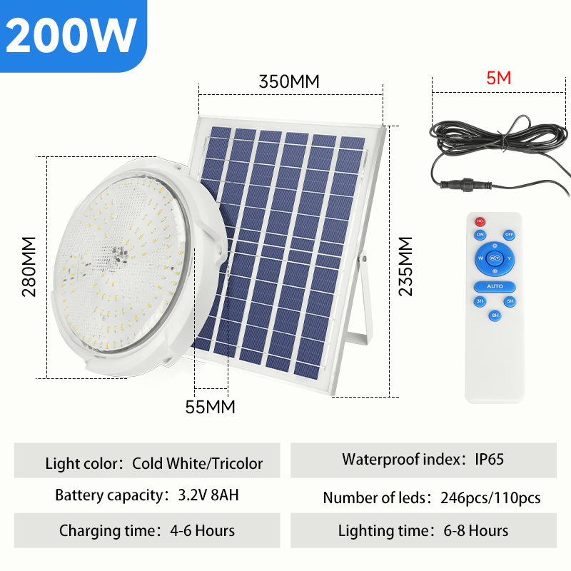 Solar Ceiling Light Modern 60/100/200/300/500W Dimmable Ceiling Lamp Waterproof Solar Light Remote Control Lampu Ceiling