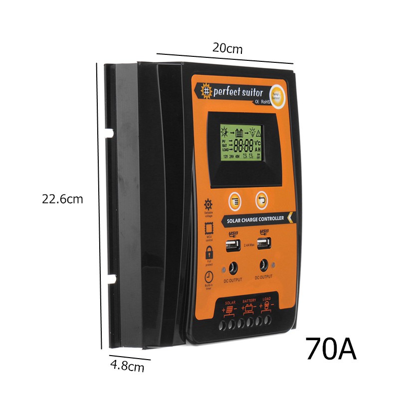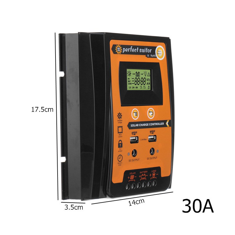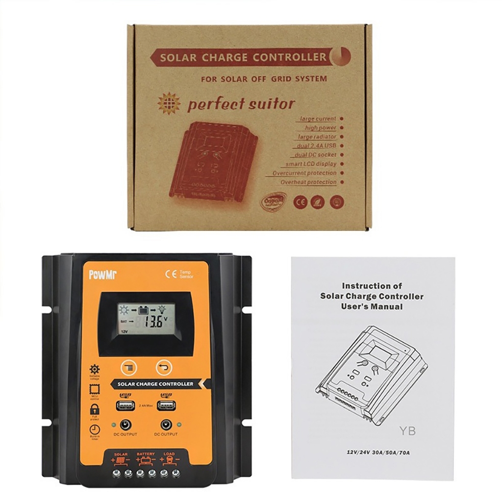 Solar Charge Controller 30A 50A 70A Adjustable LED Display Dual USB Interface Intelligent Charging Controller 12V/24V