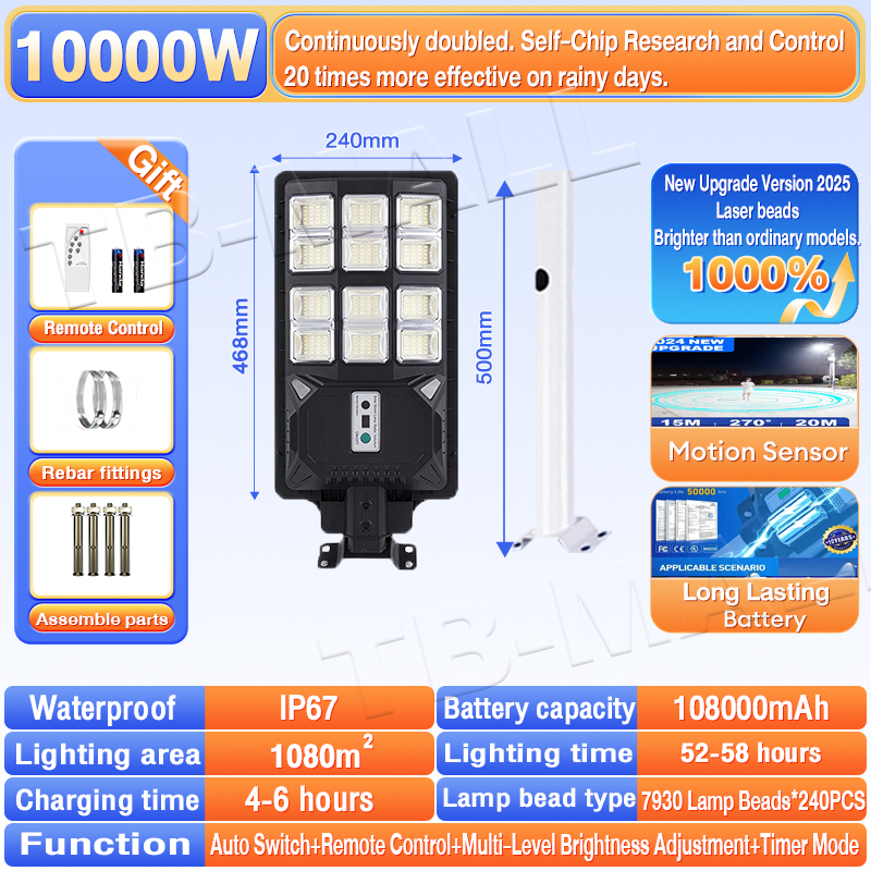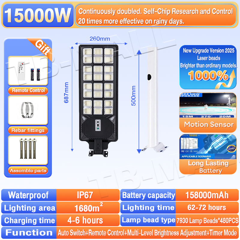 Solar Light Outdoor Lighting 200000W Lampu SolarJalan Home Street Light SolarOutdoor High-Power LED Solar IP66Waterproof