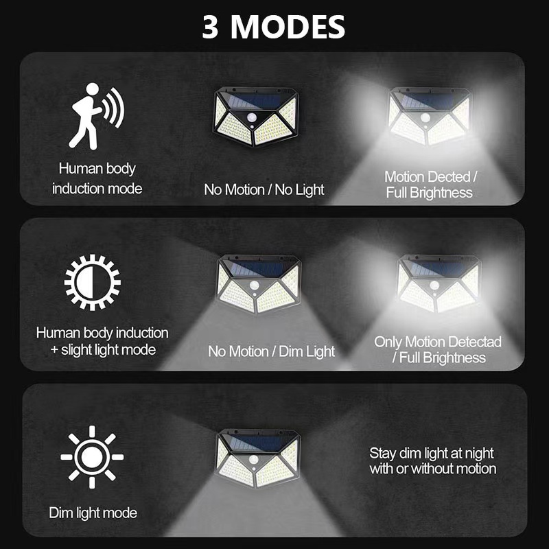 Solar Motion Sensor Light Solar Energy Saving Powered Waterproof IP65 Solar Outdoor Wall 4 Sided Lightning LED100 3 Mode