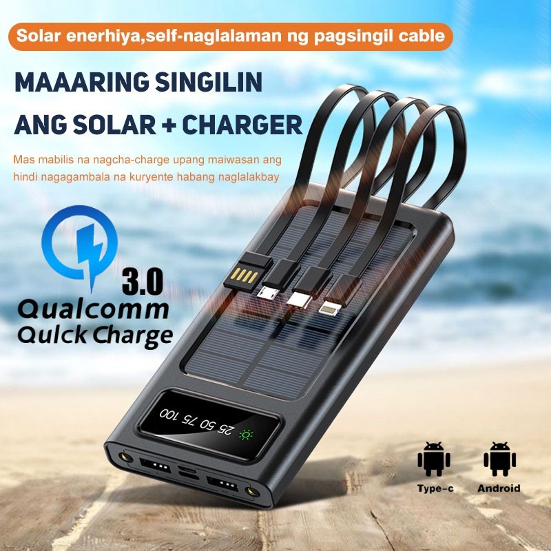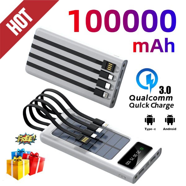 Solar Powerbank 100000mAh Outdoor Solar Energy Built-in 4 Cables Fast Charging Original Power Bank
