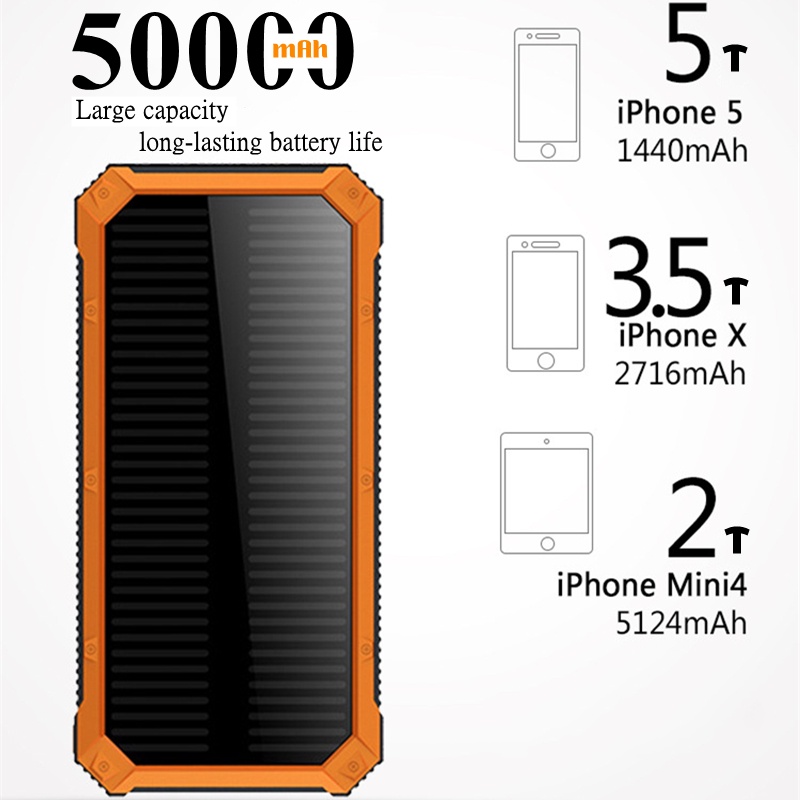 Solar Powerbank 50000mAh Outdoor Solar Energy External Battery Fast Charging 100% Original Solar Power Bank