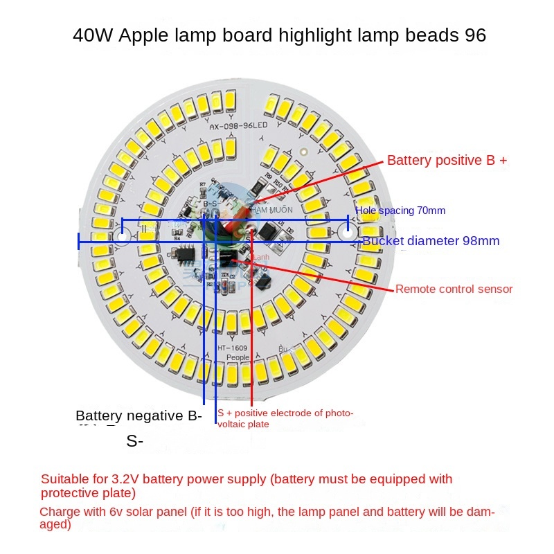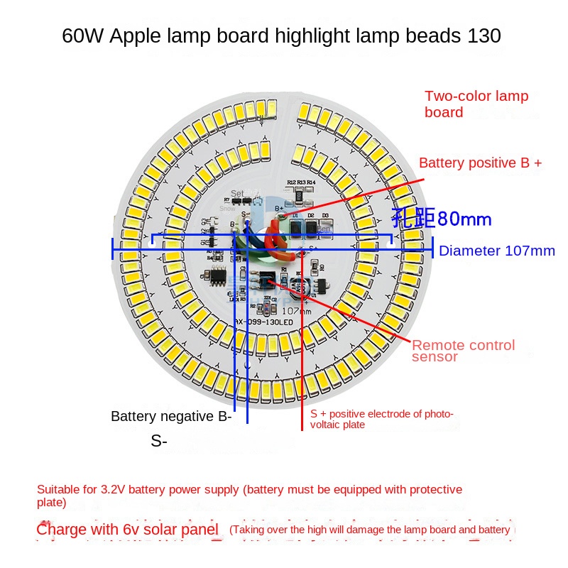 Solar lamp accessories Luminous panel 3.2V-6V integrated ceiling lamp wall lamp LED light source panel control (with remote control)