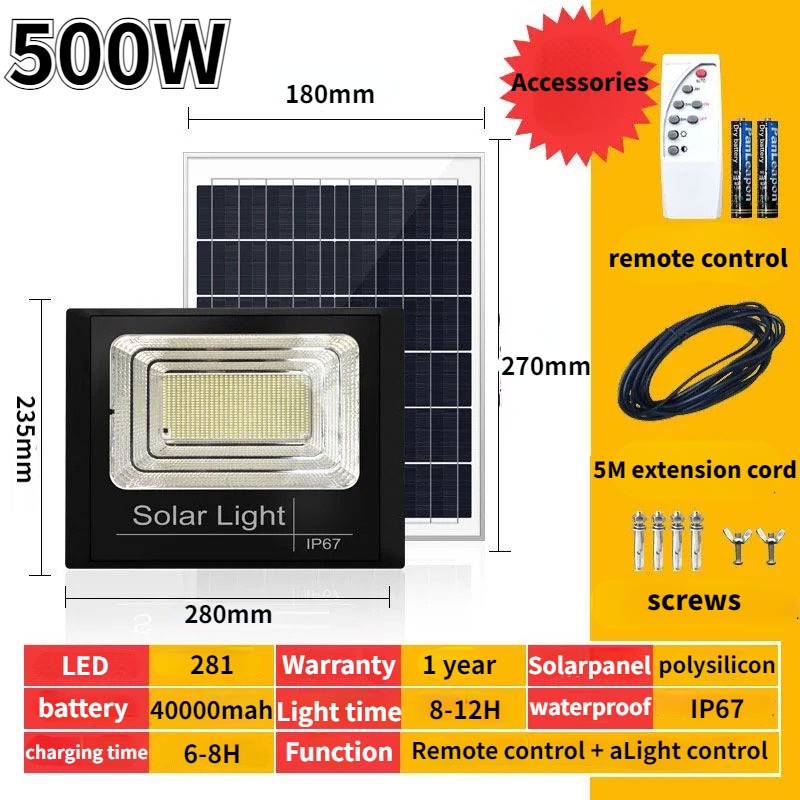 lampu solar 500W 1000W Solar light Outdoor lighting IP67 Waterproof Remote Control Solar garden light Solar Flood Light