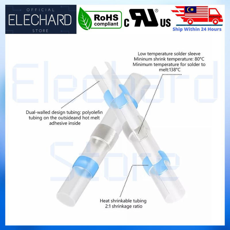 Solder Seal Wire Connector Heat Shrink Waterproof Butt Splices Soldered Terminal