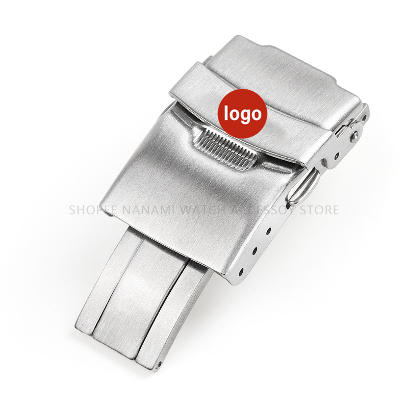 Solid 304 Stainless Steel Watch Buckle for Seiko Diving Folding Clasp 18mm 20mm 22mm 24mm Metal Double Press Button with Logo Watch Strap Accessories
