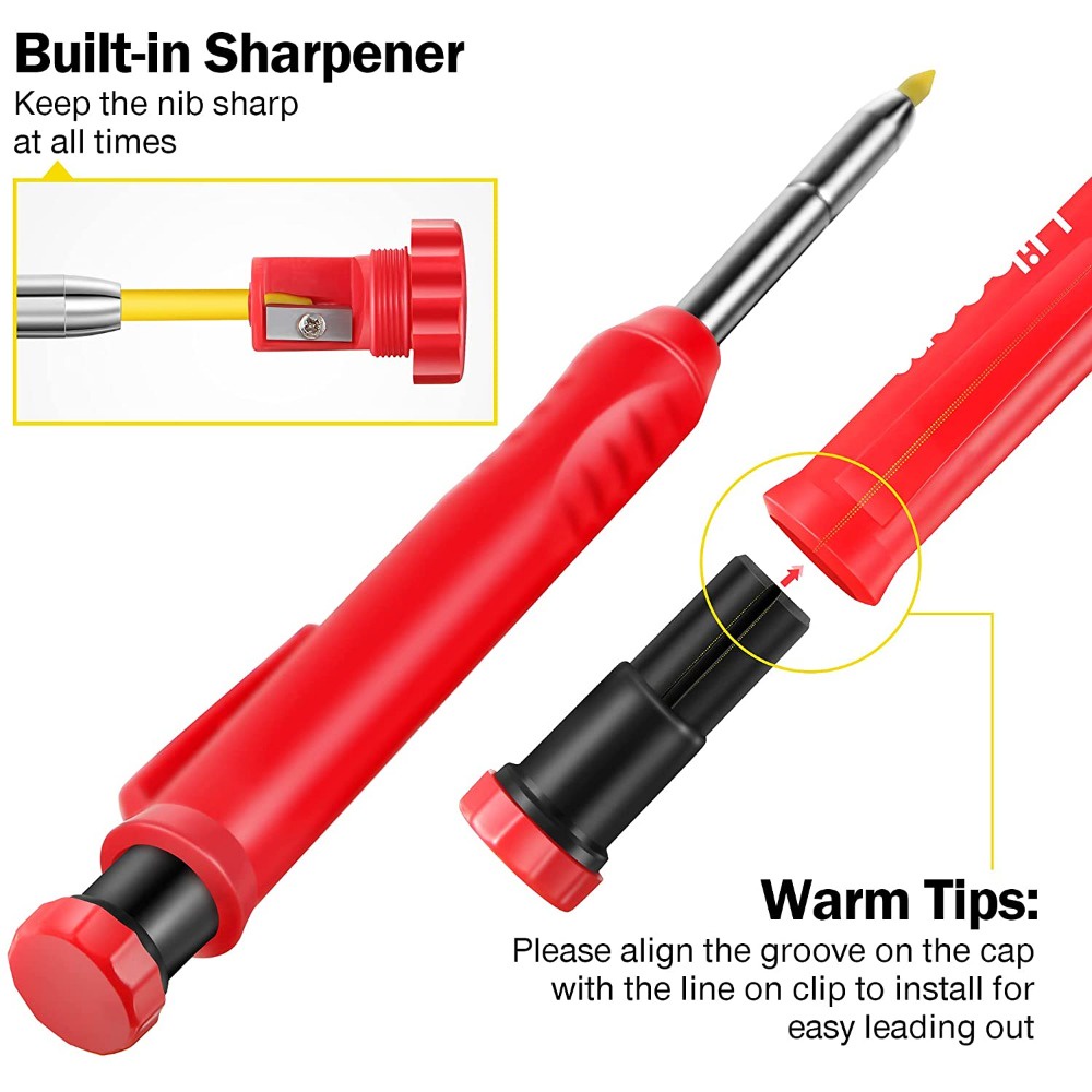 Solid Carpenter Pencil Set Hole Mechanical Pencil Refill Construction Marker Marking Tool for Carpenter Scriber Woodworking Arch