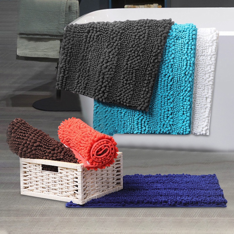 Solid Color Bathroom Mat Bath Carpets Chenille Water Absorption Bathtub Washbasin Floor Mat Non-slip Toilet Rug Plush Foot Mat