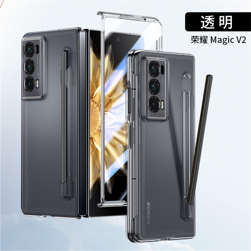 Solid Color Tempering Glass Phone Case For Honor Magic V2 PC Hard Shell Protection Shockproof Protective Film With S Pen Cover