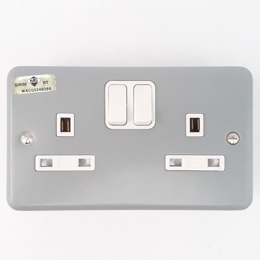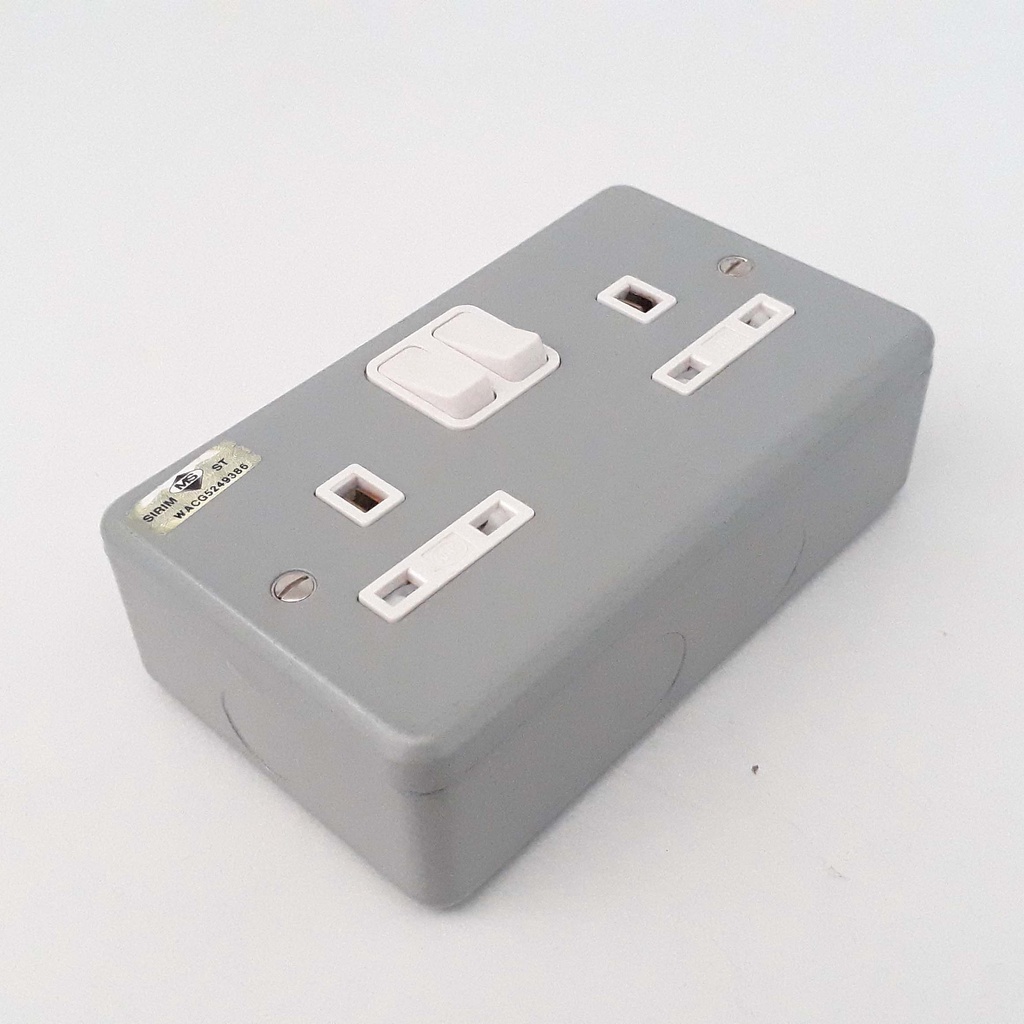 Solid Heavy Duty MK 2 Gang Metal Clad 13A Switch Plug Socket Outlet For Industrial Electrical Machinery