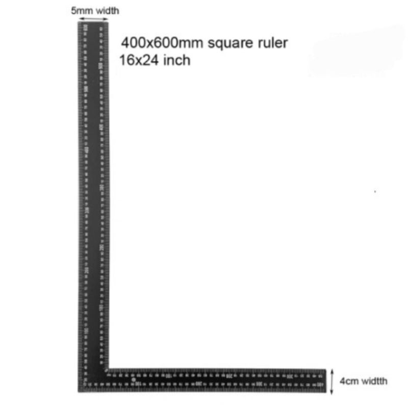 Solid Rafter Framing Square Ruler L Shape Ruler Black Stainless Steel (600mm x 400mm)
