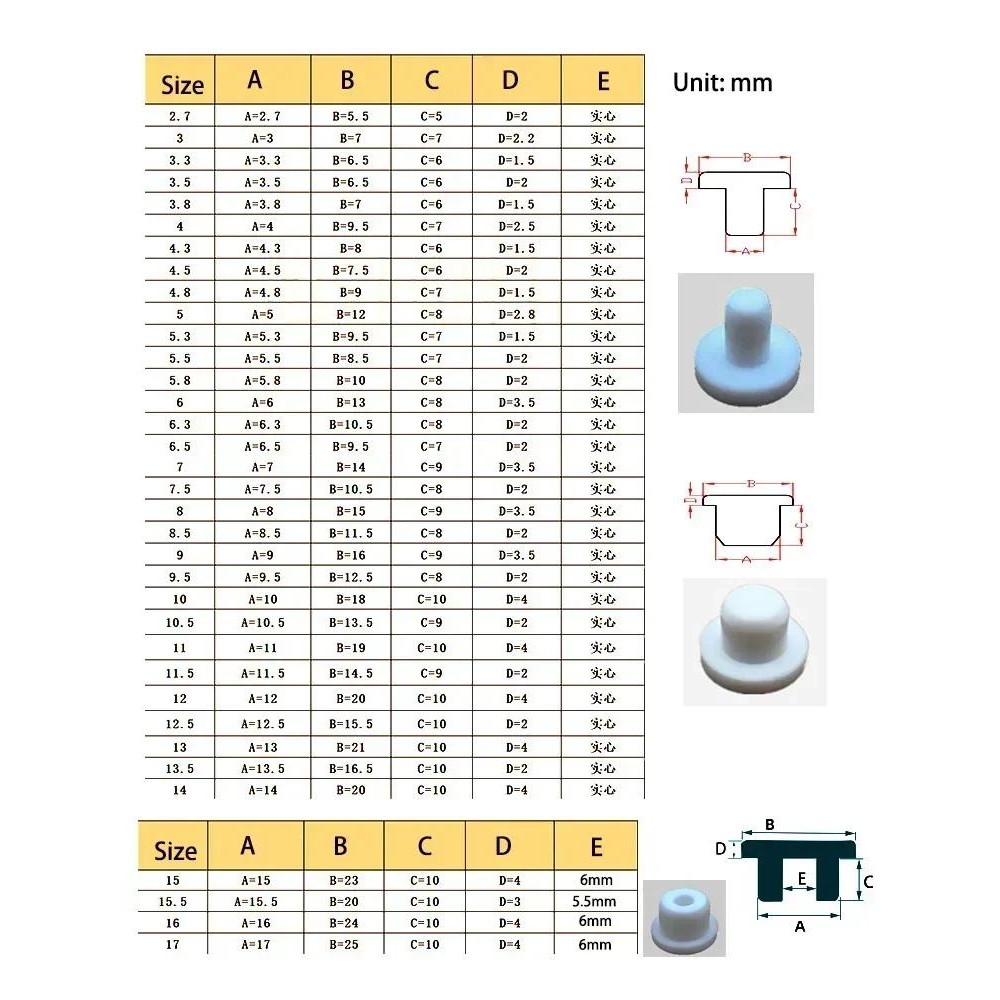 Solid Sealing Plug 2mm - 14mm Silicone Rubber Hole Caps, T-shaped Seal Stopper High TEMP Dustproof Plug Inserts Bungs End Cap