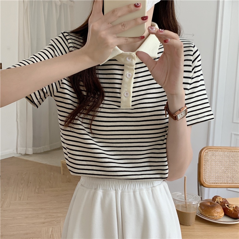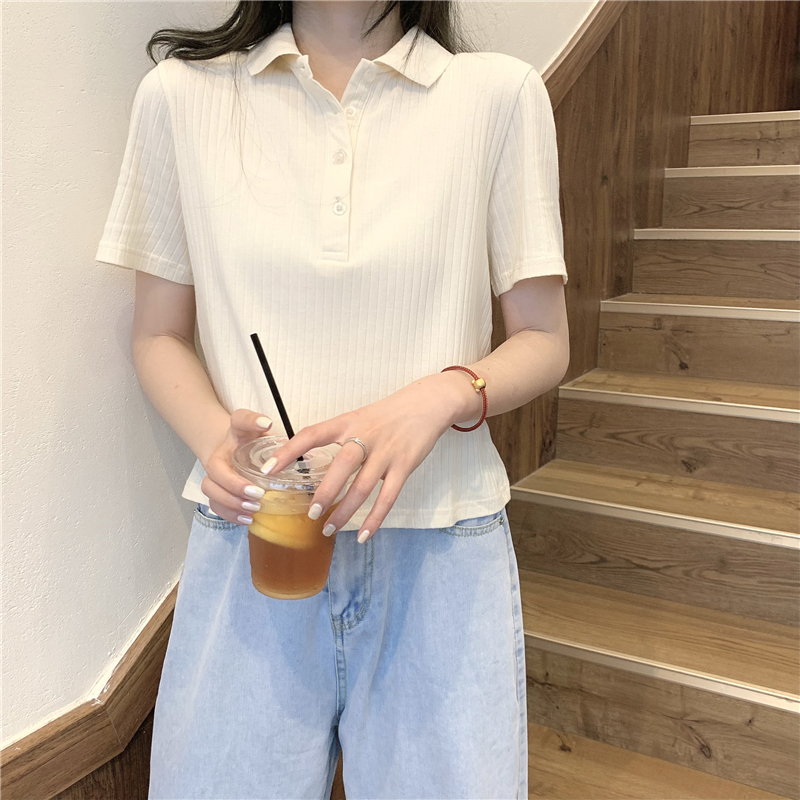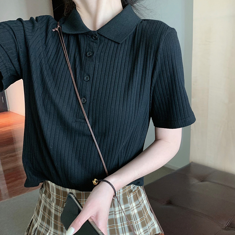 Zuoan Solid Slim Shirt Women's Versatile Polo Short Sleeve Shirt Top