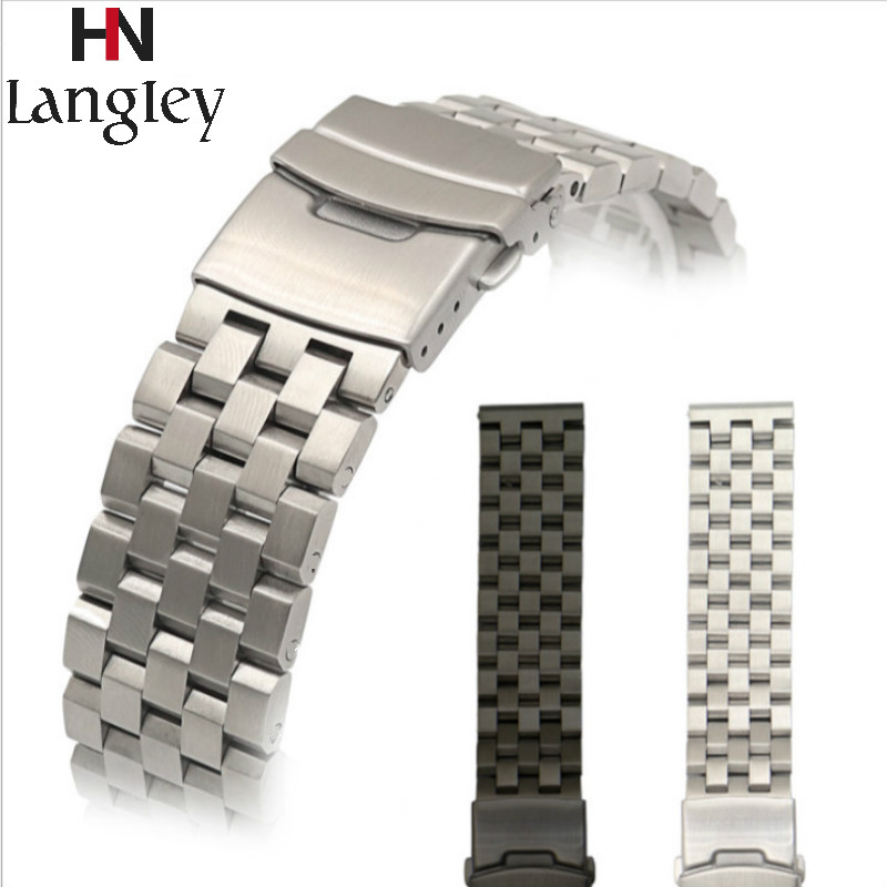 Solid Stainless Steel Watch Strap Bracelet 18mm 20mm 22mm 24mm 26mm Silver Brushed Metal Watchbands Women Men Watch Accessories with Tools
