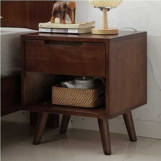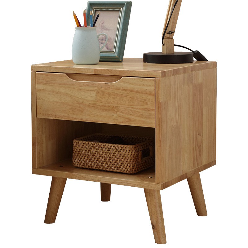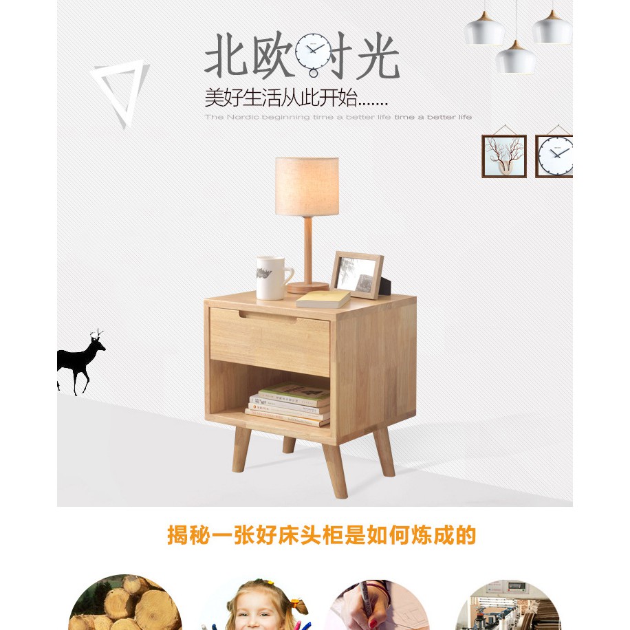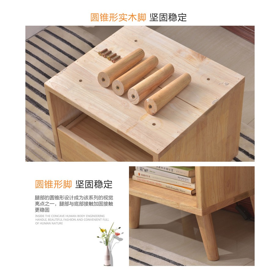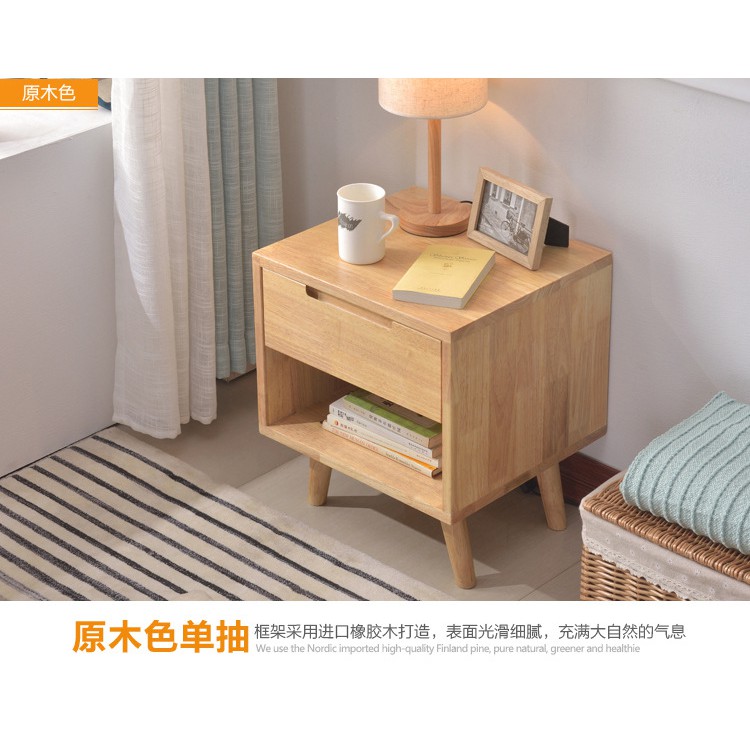 Solid Wood Bedside Table Minimalistic Muji Style Multipurpose Bedside Cabinet