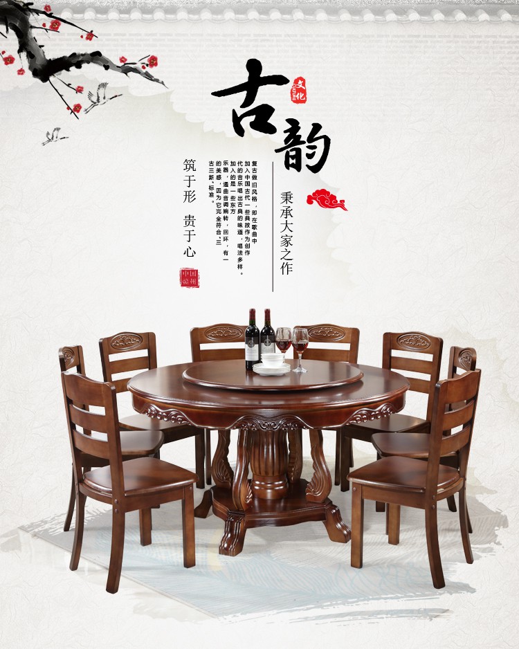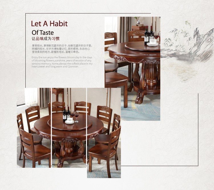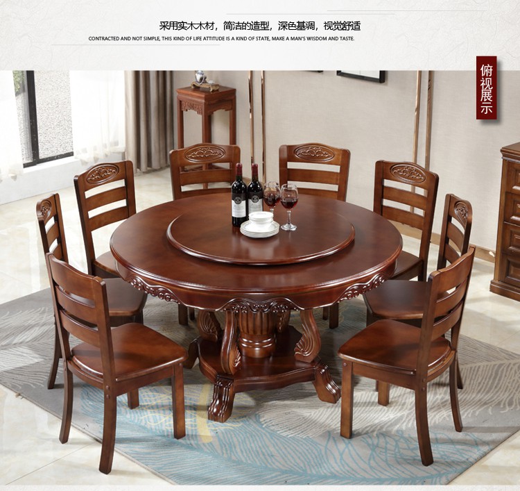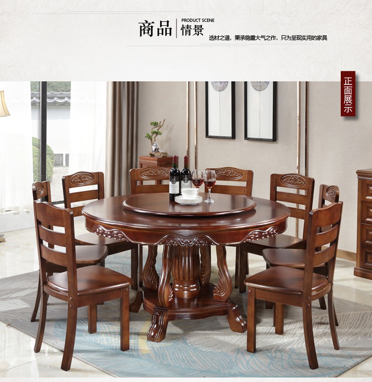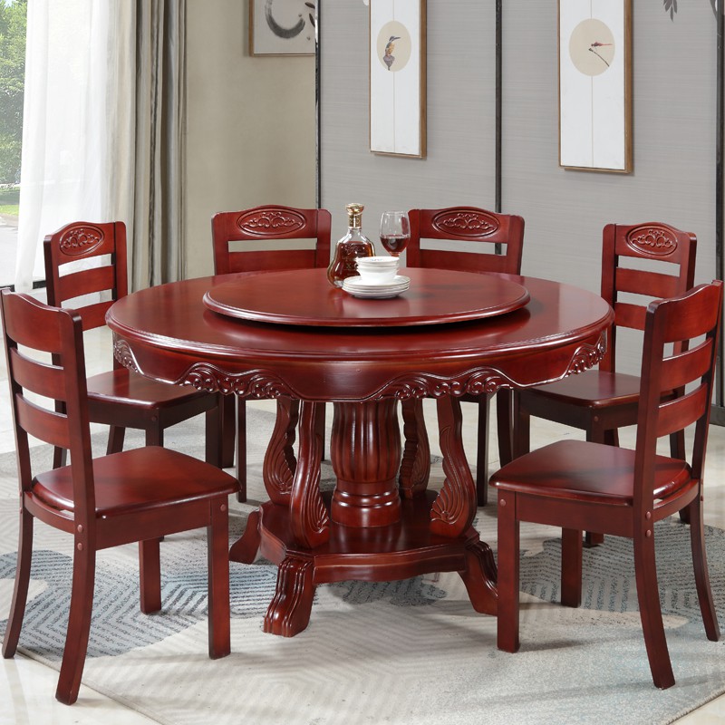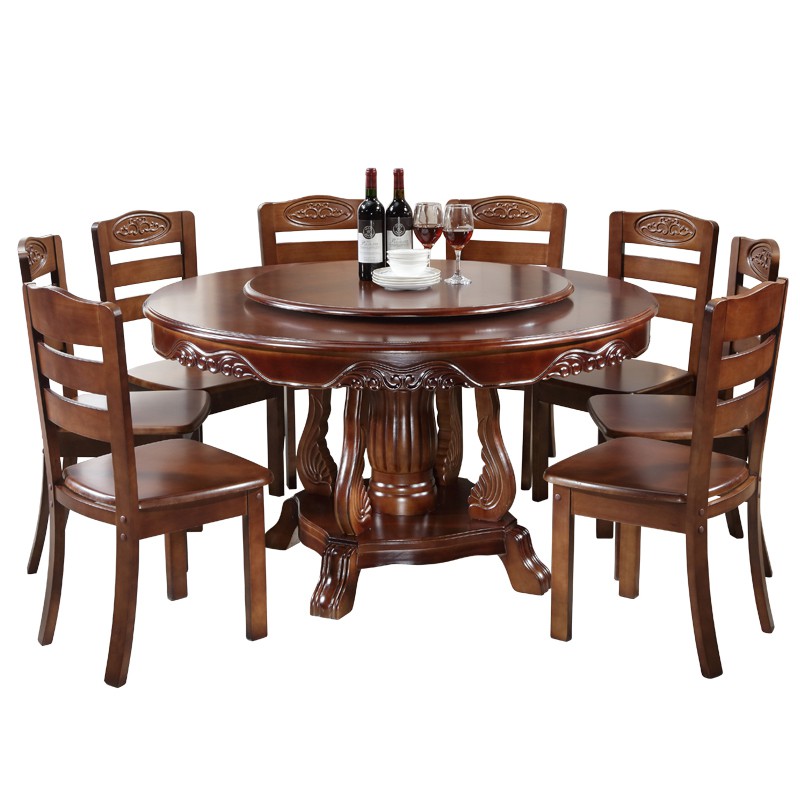 Solid Wood Dining Tables And Chairs Set Chinese Round Household 10-Person Dining Table With Turntable Modern Minimalist