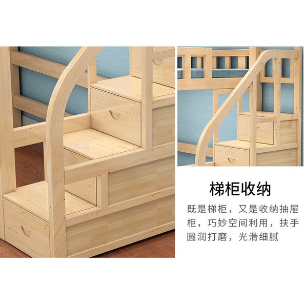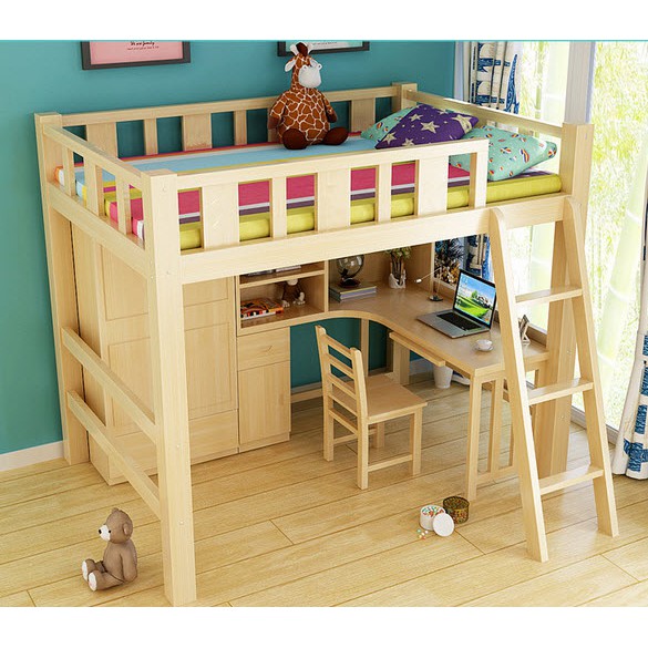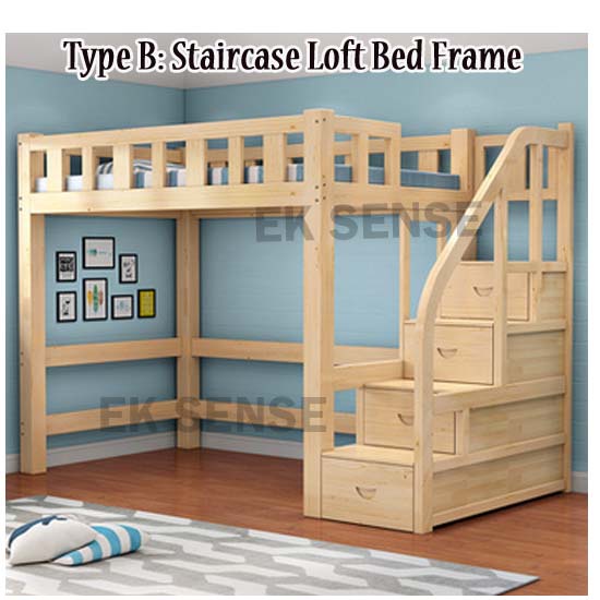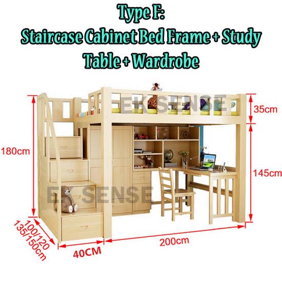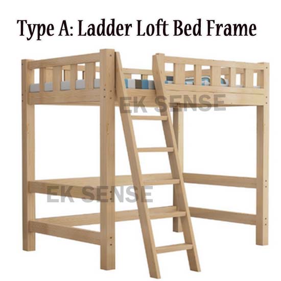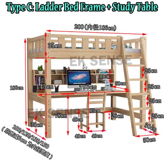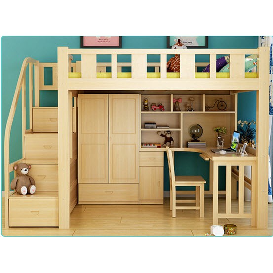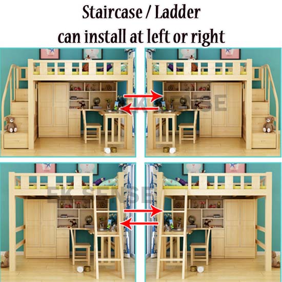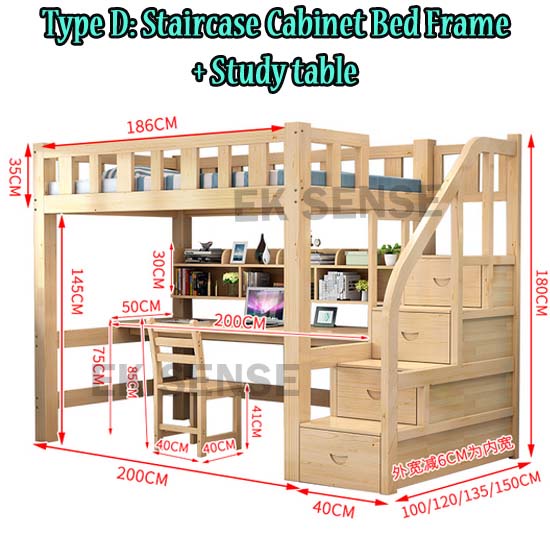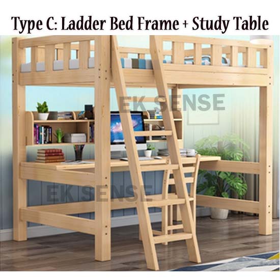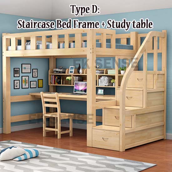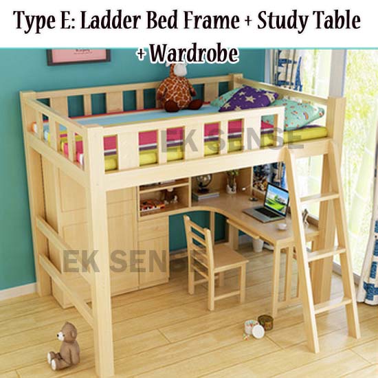 Solid Wood Kids Loft Bunk Bed Frame Study Table Wardrobe Set Katil Kayu 2 Tingkat Budak Meja Loteng (1 month pre-order)