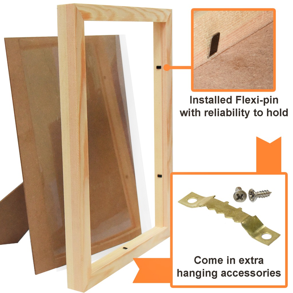 Solid Wooden Pine Wood Frame 4R 6R 8R 10R A4 A3 Photo Frame | Bingkai Frame Gambar Kayu | Natural Wood Color Photo Frame