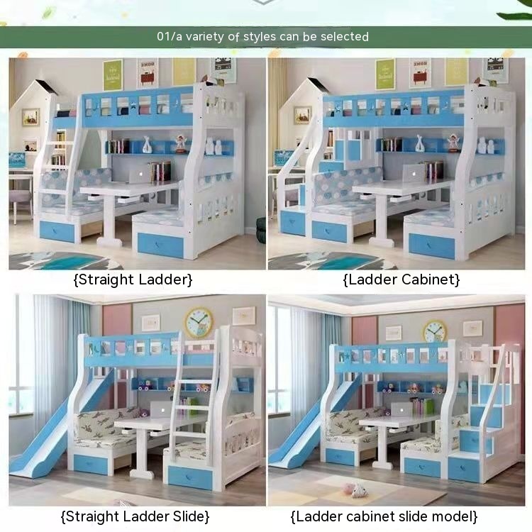 Solid wood bunk bed with desk, children's slide, high and low bed, wooden bed, bunk bed, table, mother and child bed
