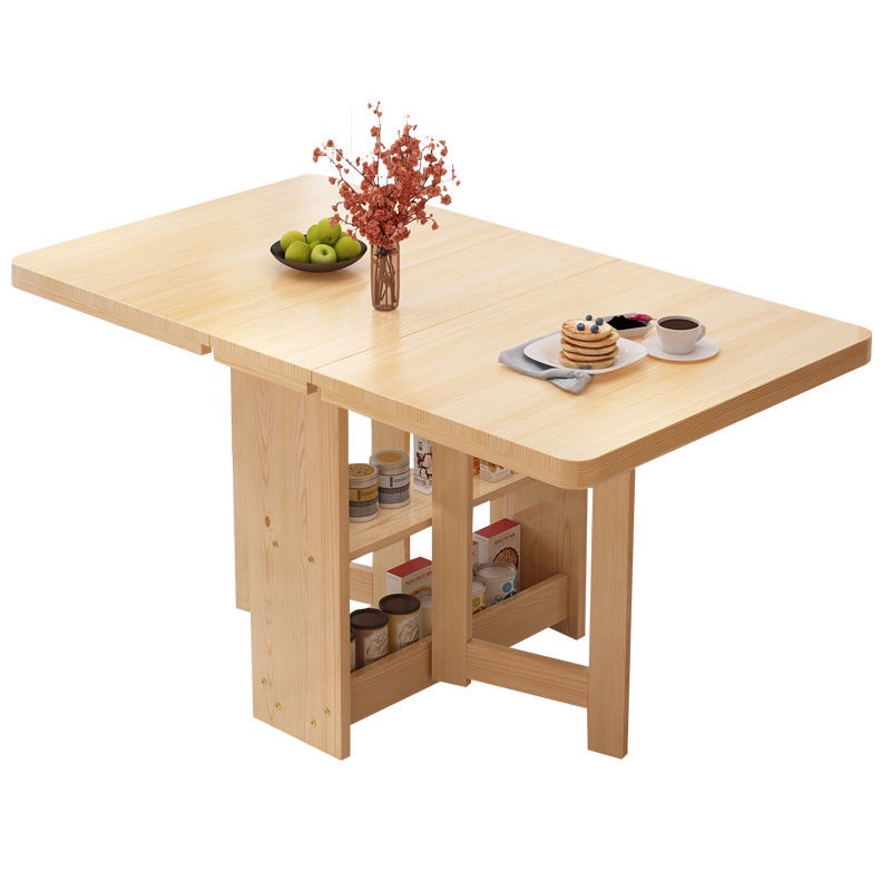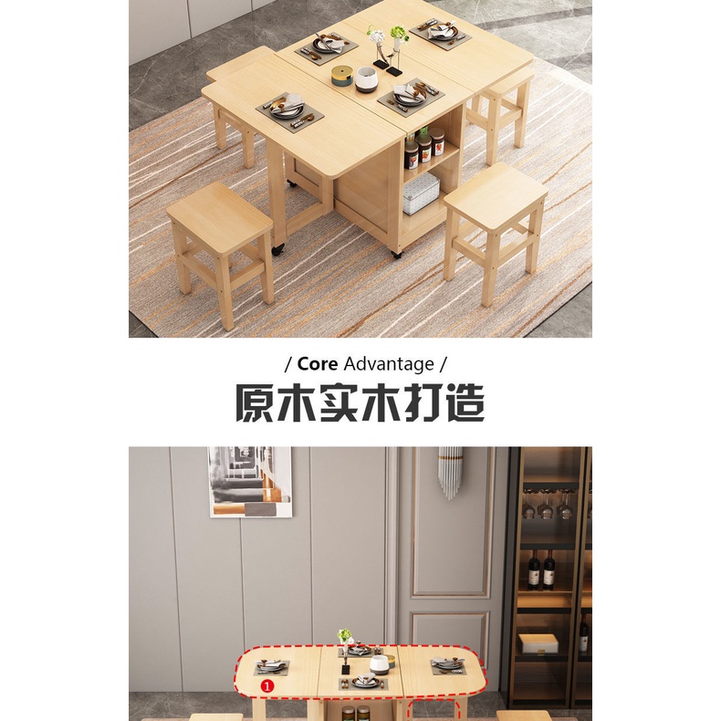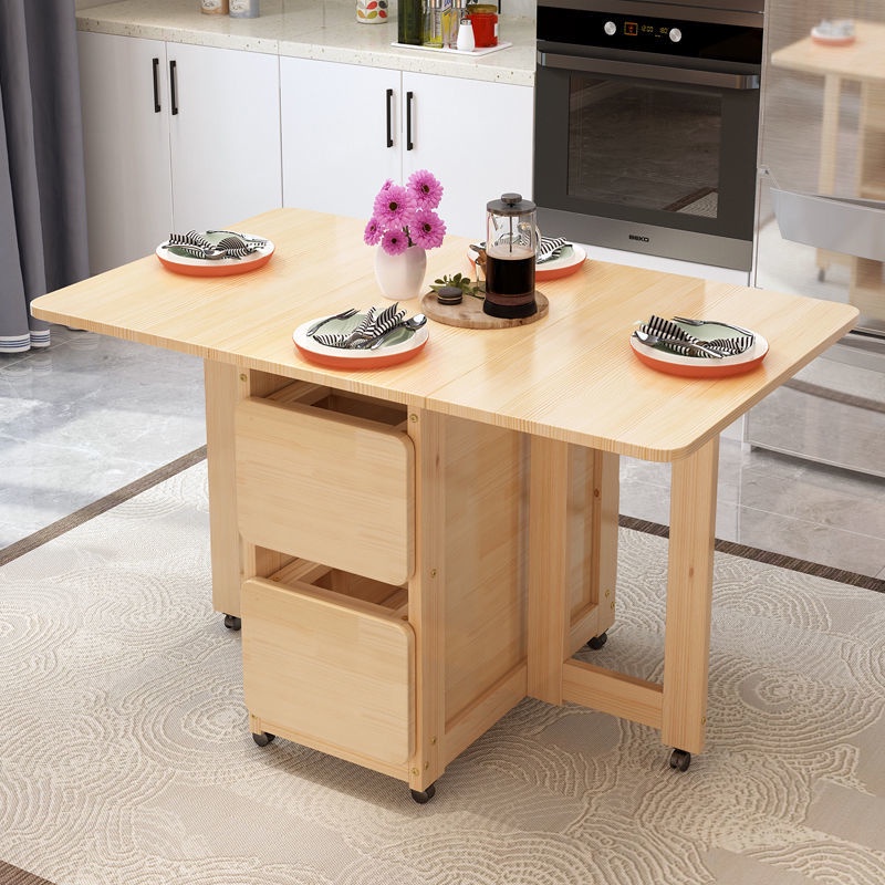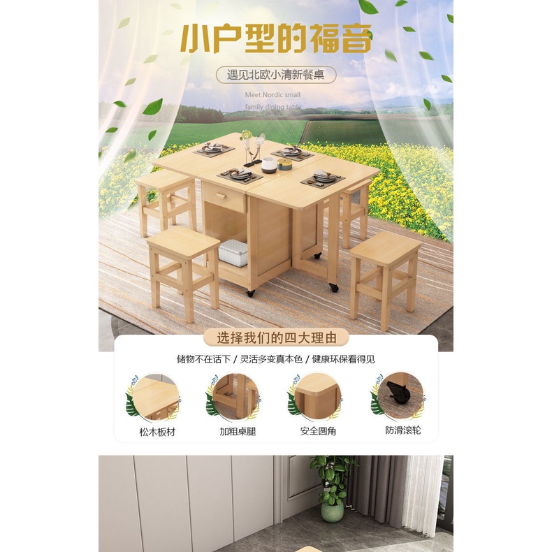 Solid wood folding dining table and chairs small apartment rectangular multifunctional solid wood dining table