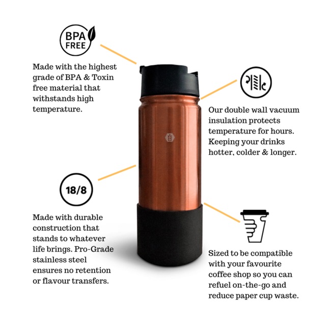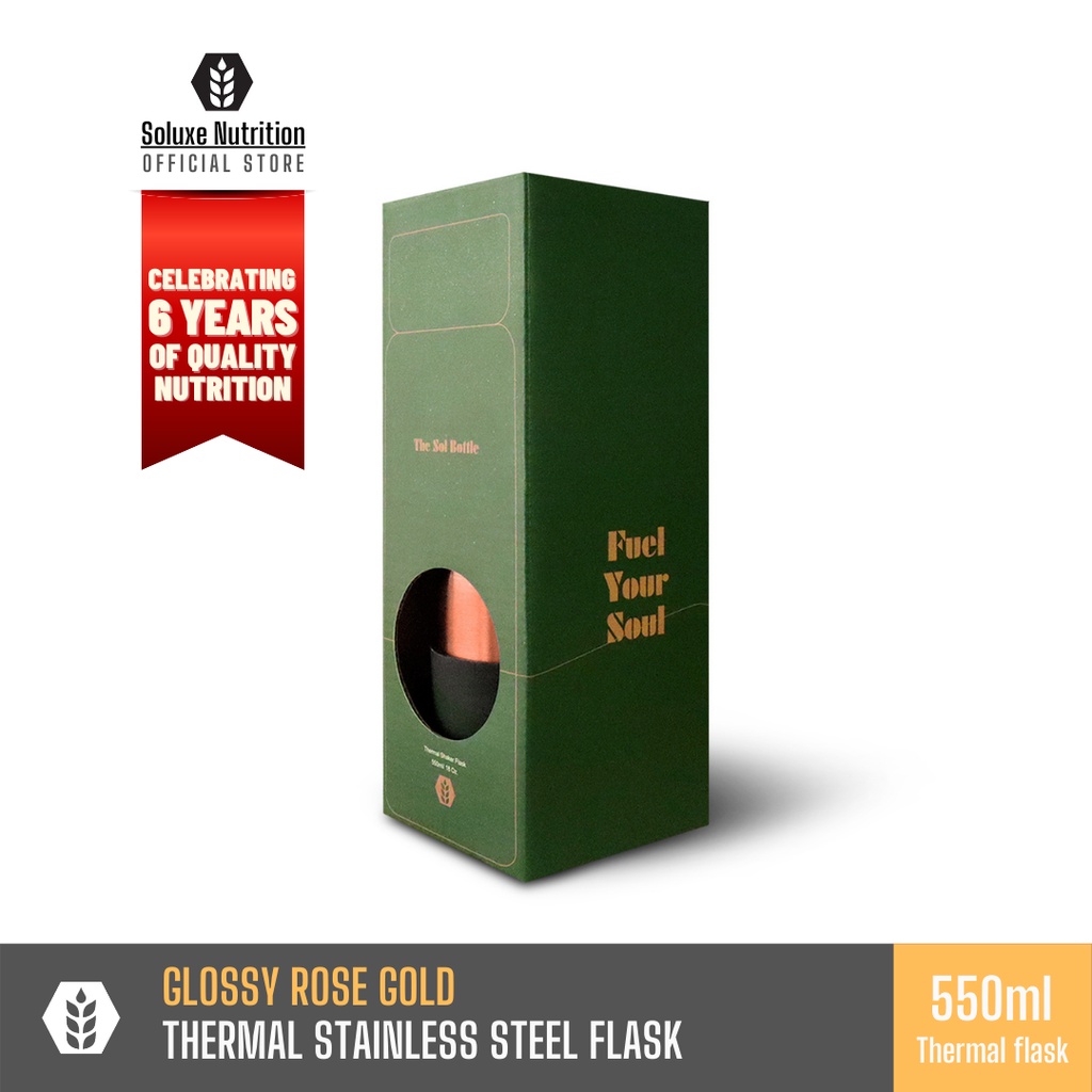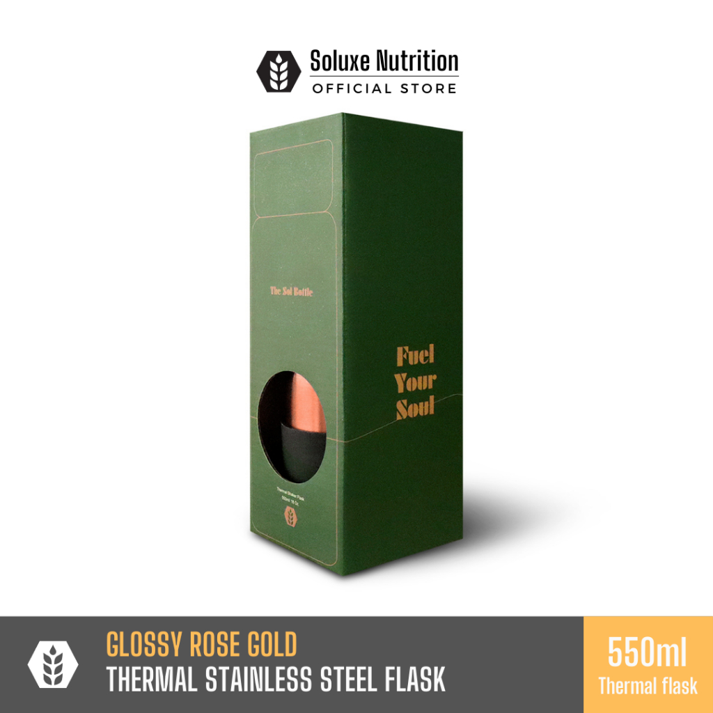 Soluxe Premium Rose Gold Thermal Stainless Steel Shaker Flask - 550ml