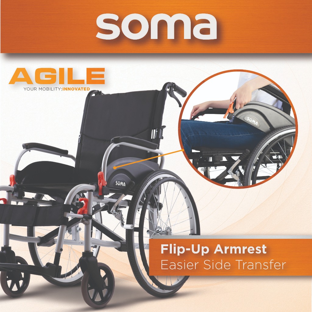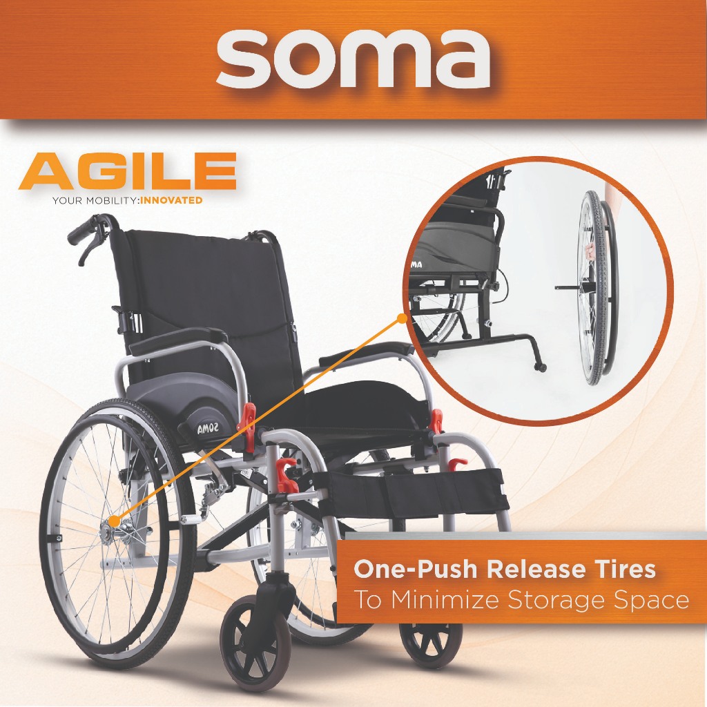 Soma Agile DAF Aluminum Wheelchair With Detachable Flip Back Arm Rest and Swing Away Footrest