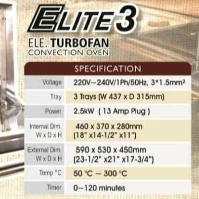 Soner ELITE- 3 Electric Convection Oven (Turbo Fan)
