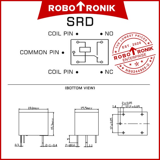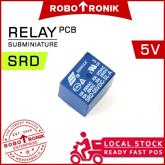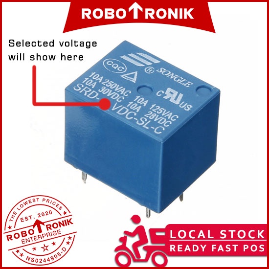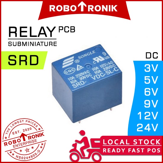 Songle Relay SRD (SPDT) 3V 5V 6V 9V 12V 24V DC max.10A 5-PINS (SRD-*-SL-C) Relays Switch On Off Arduino Raspberry Pi
