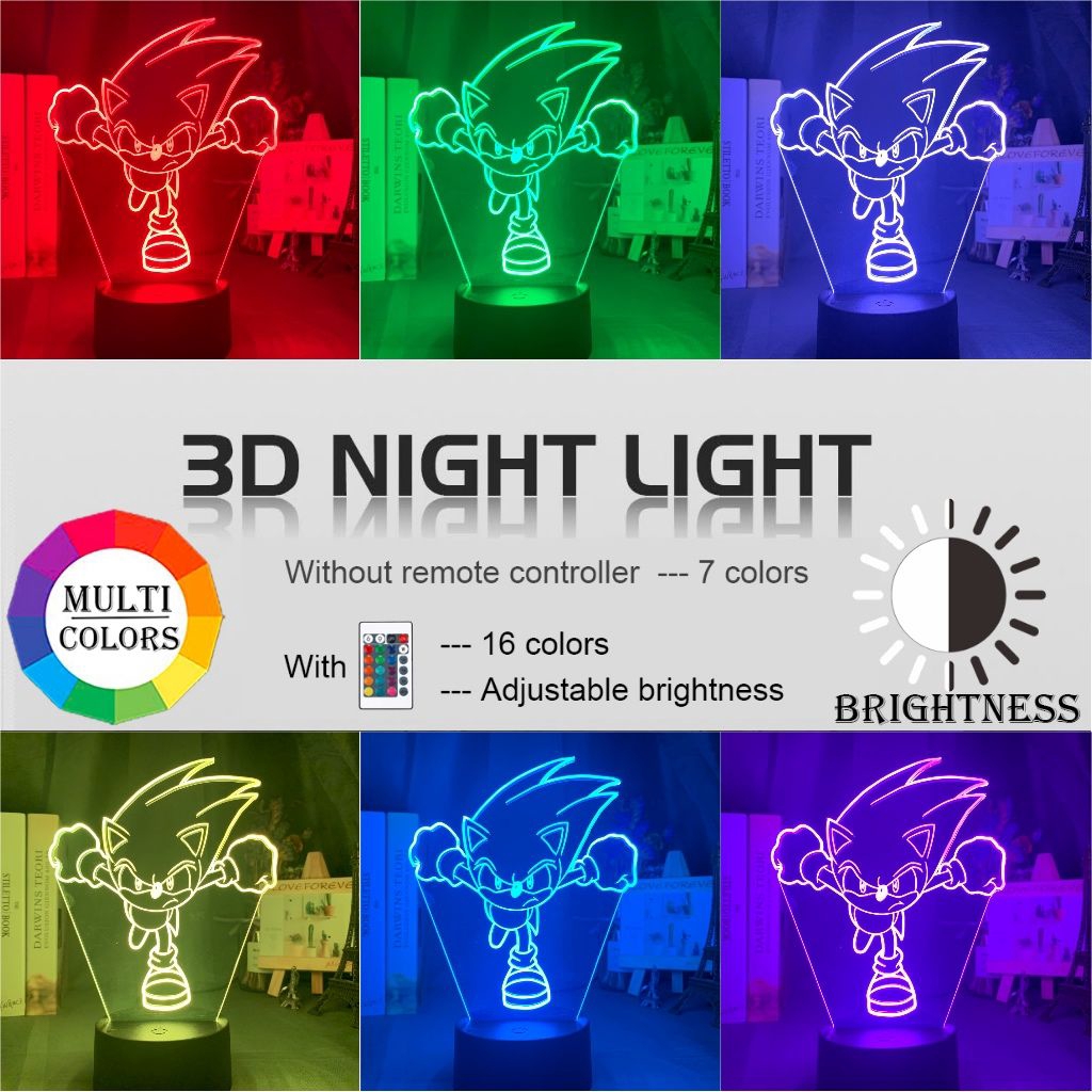 Sonic Running Figure Led Night Light Bedroom Decoration Nightlight Color Changing Usb Desk Lamp Sonic The Hedgehog Gift